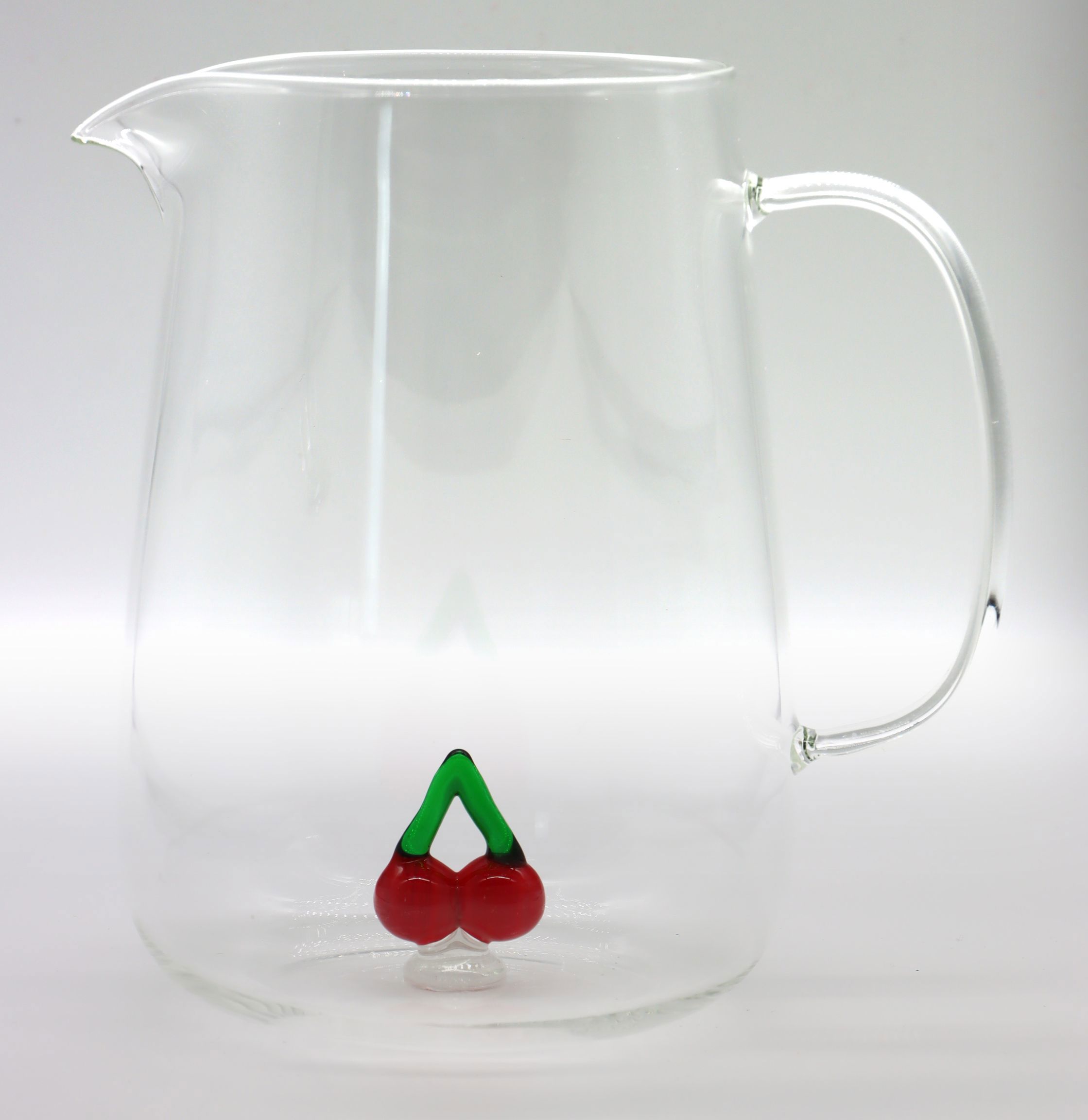 Hergestellt aus hochwertigem Glas, vereint der Glaskrug "CHERRY" Ästhetik mit Langlebigkeit. Das bezaubernde Kirschdesign verleiht Ihrem Tischarrangement einen frischen und ansprechenden Look und macht diesen Krug zu einem Blickfang. Die glasklare Transparenz ermöglicht es, den Inhalt wunderbar zur Geltung zu bringen – ob farbenfrohe Limonaden, duftende Tees oder belebendes Wasser mit frischen Früchten.