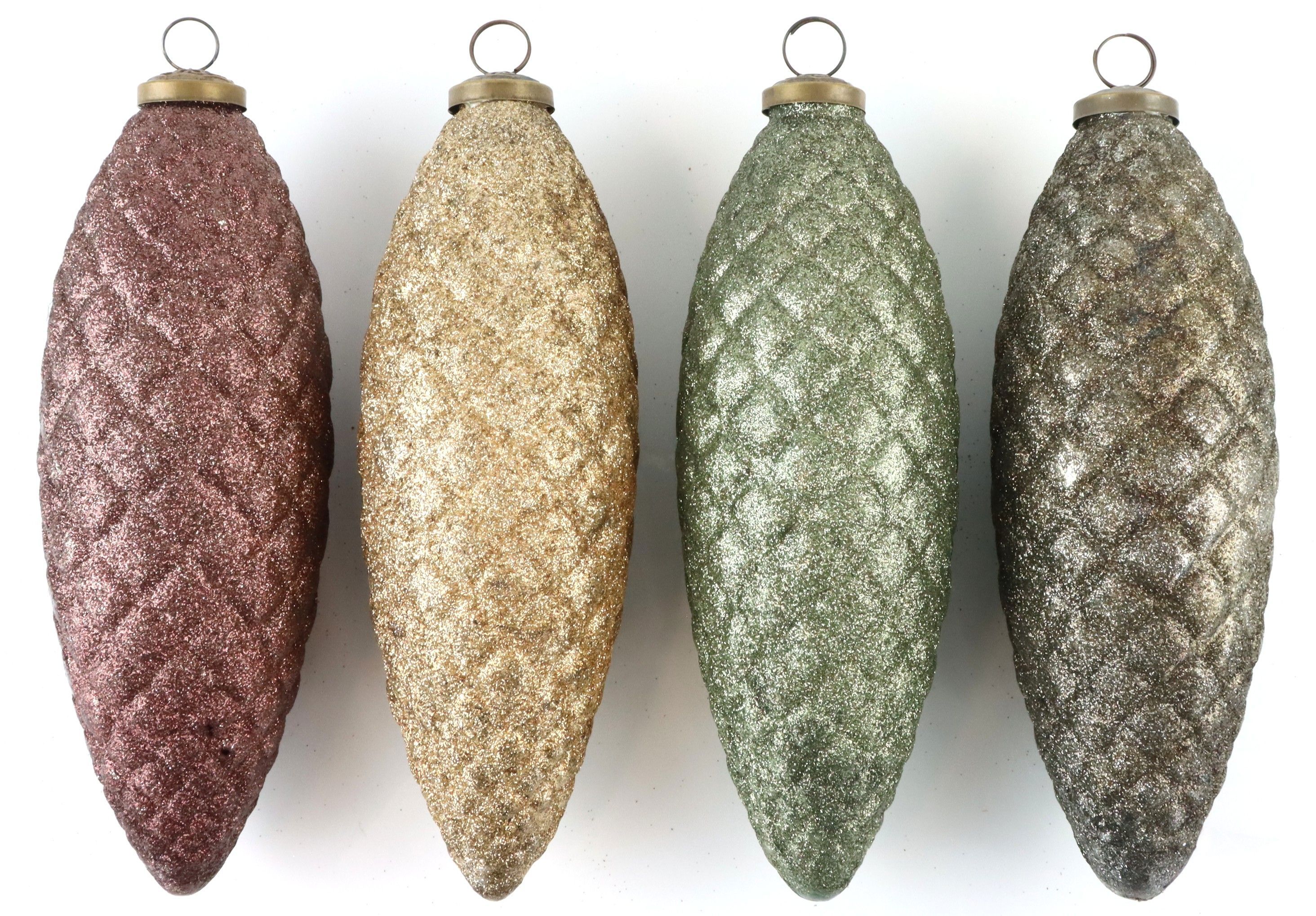 - Hochwertiges Glaszapfen-Set aus 4 Teilen in den Farben Braun, Grün, Gold und Rot