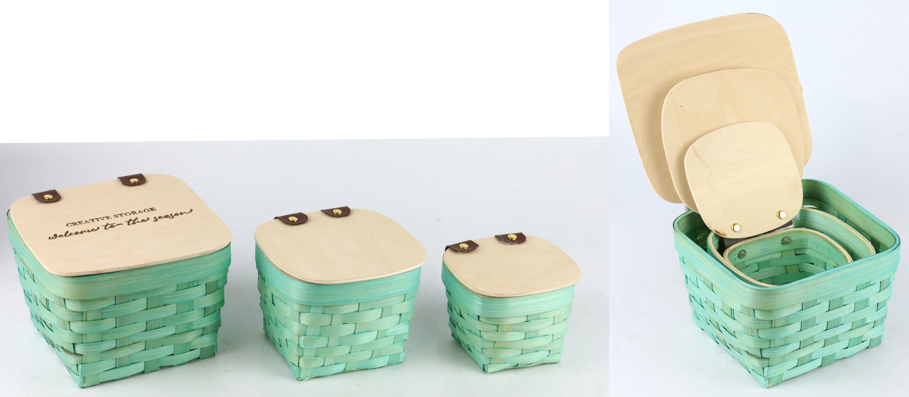 - 3-teiliges Set von Deckelkörben in verschiedenen Größen: ca. 9cm, 11,5cm, 14cm.