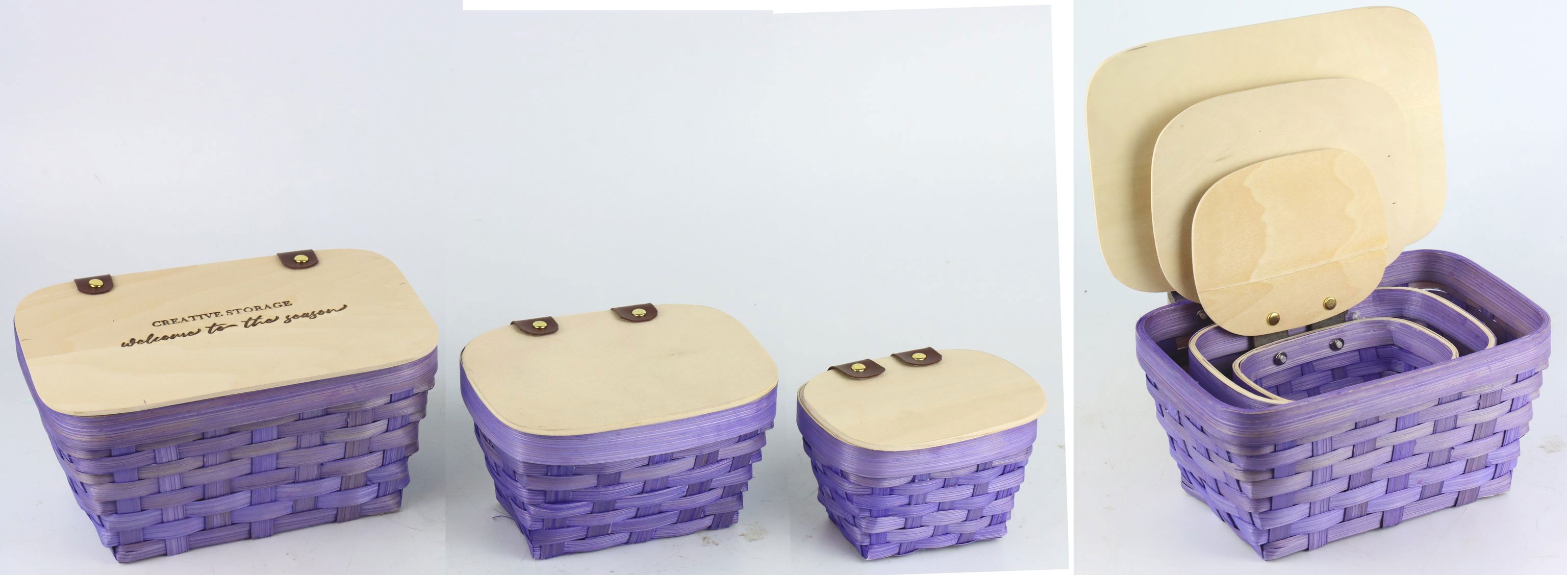 Hergestellt aus hochwertigem Bambus und Holz, zeichnen sich die DECKELKÖRBE "STORAGE" durch ihre Nachhaltigkeit und Langlebigkeit aus. Die unterschiedlichen Größen von circa 11 cm, 14,5 cm und 19 cm erlauben vielseitige Einsatzmöglichkeiten, sei es zur Aufbewahrung von Schmuck, Schlüsseln oder kleinen Wohnaccessoires. Die violetten Töne fügen sich nahtlos in das Wohnambiente ein und setzen stilvolle Akzente, die den Kunden begeistern werden.
