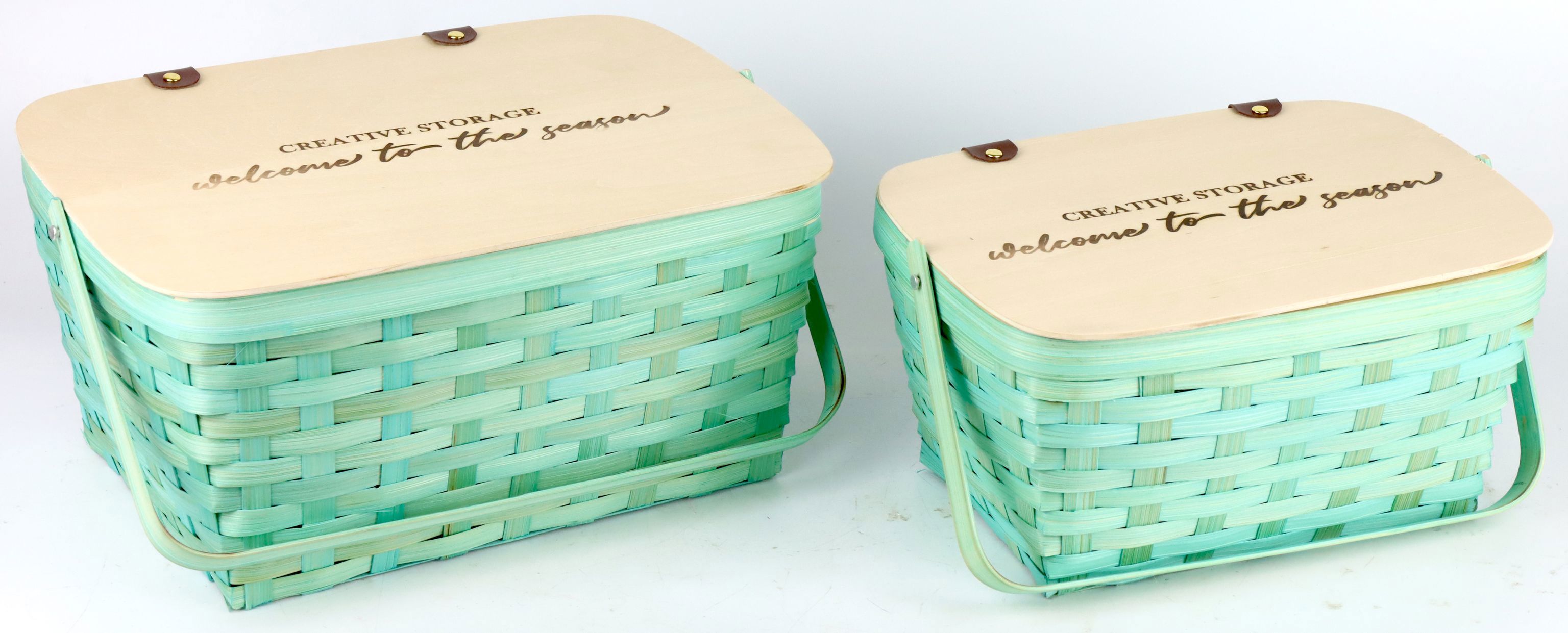 Erleben Sie unser zeitloses Set aus zwei eleganten Deckelkörben "STORAGE", die perfekt in das Sortiment von Wohn- und Lifestyle-Läden passen. Diese stilvollen Aufbewahrungskörbe, Artikelnummer 8452, sind ideal für den stationären Einzelhandel, der seinen Kunden etwas Besonderes bieten möchte. Gefertigt aus nachhaltigem Bambus und robustem Holz, vereinen sie Ästhetik und Funktionalität auf höchstem Niveau. Als Teil unserer Frühjahr/Sommer-Kollektion verleihen sie jedem Raum eine frische und organisierte Ausstrahlung.