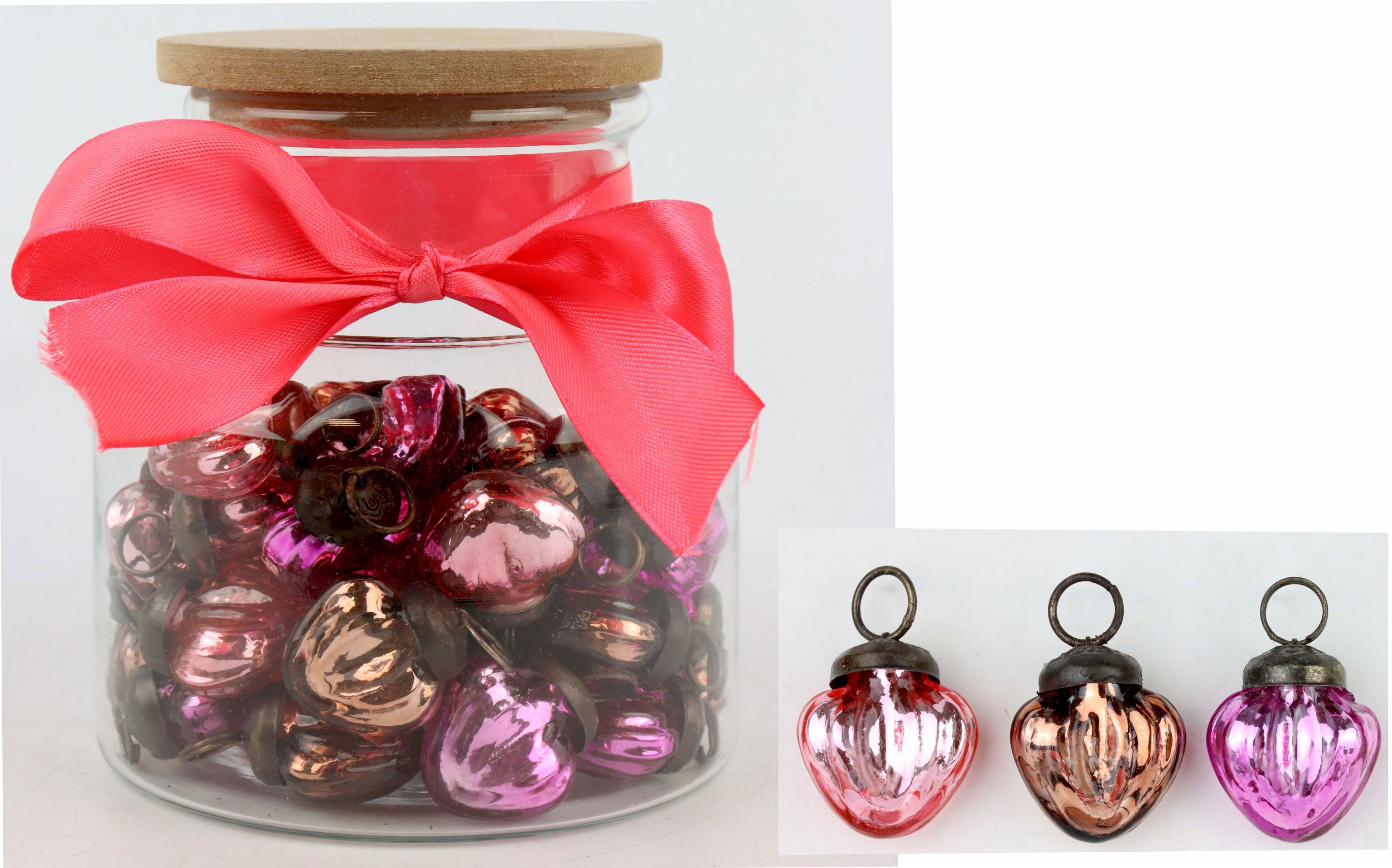 Unser Herzschmuck im Glas "Pink" S/45 ist eine edle und besondere Ergänzung für den stationären Einzelhandel zum Weihnachtsfest, der den Käufern eine einfache Möglichkeit bietet, ihre Räume liebevoll zu dekorieren oder einem nahestehenden Menschen ein charmantes Geschenk zu machen.