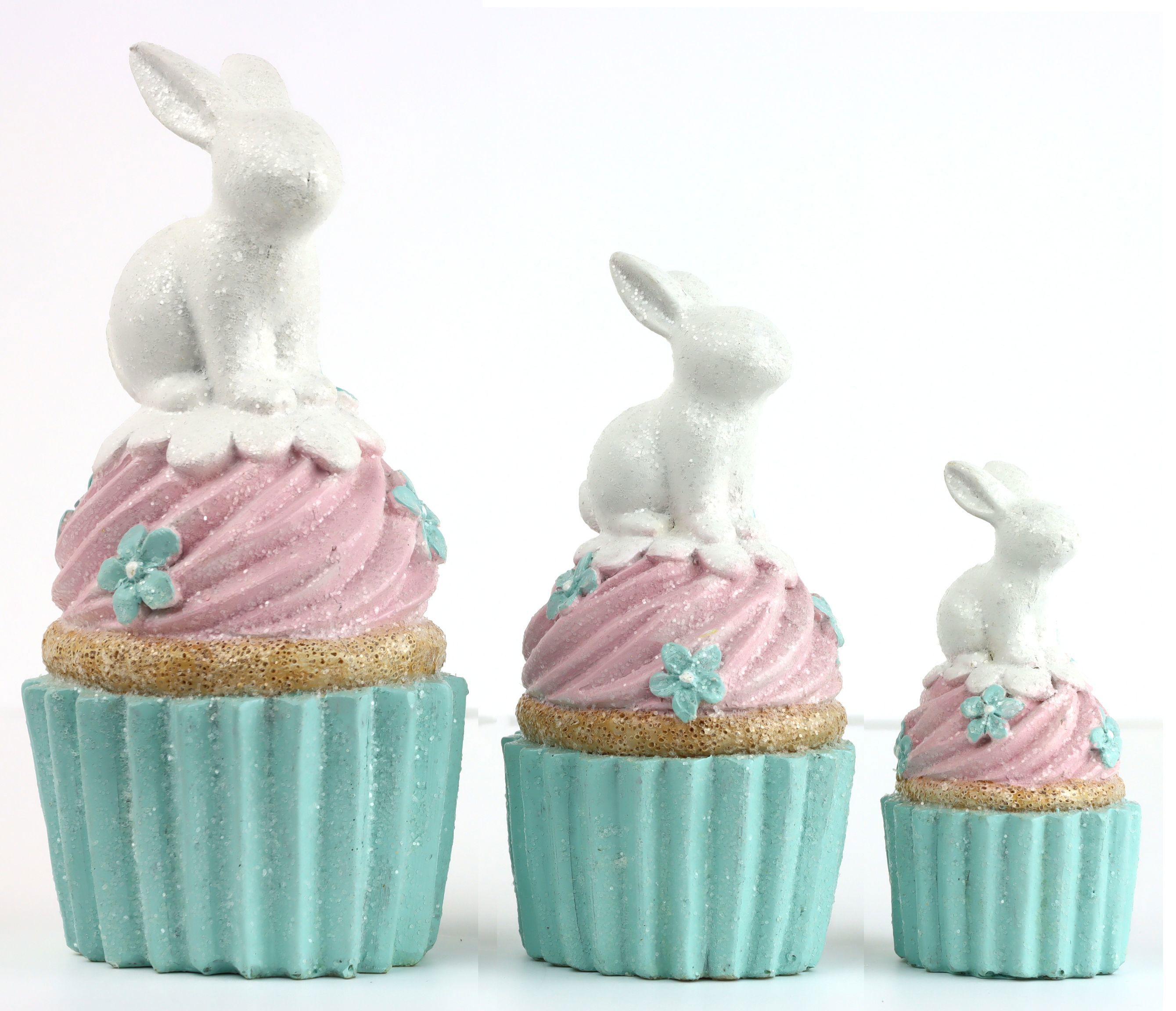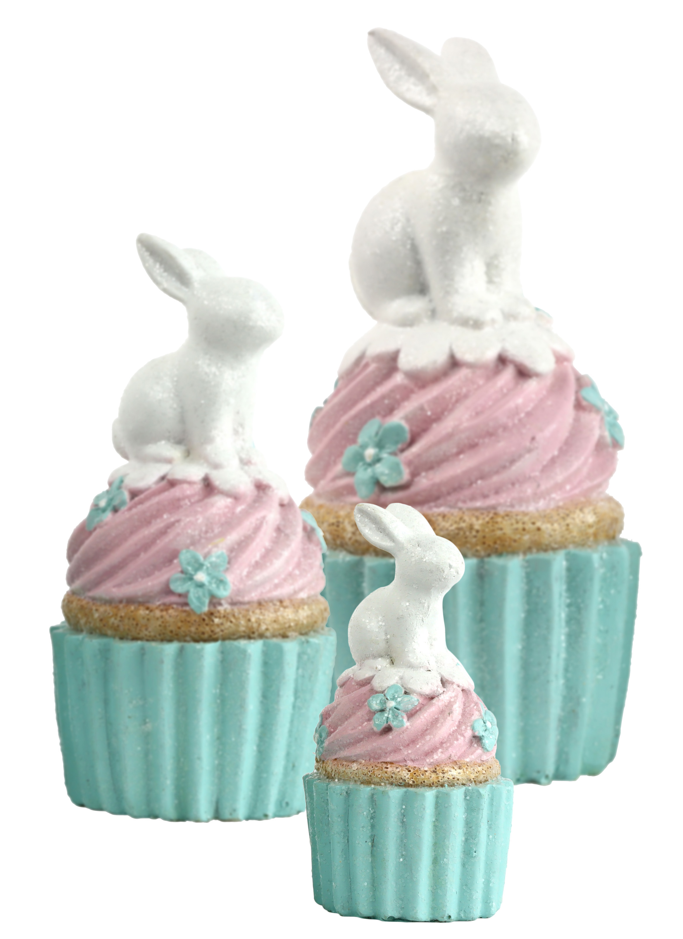 Verleihen Sie Ihrem Sortiment an Wohn- und Lifestyle-Produkten einen verspielten, saisonalen Akzent mit dem bezaubernden HASENTRIO "BUNNYCAKE" S/3. Dieses dreiteilige Hasenset, gefertigt aus hochwertigem Polyresin, präsentiert sich in einem charmanten Cupcake-Design, das mit Sicherheit die Blicke auf sich zieht und zum Highlight jeder Osterdekoration wird.