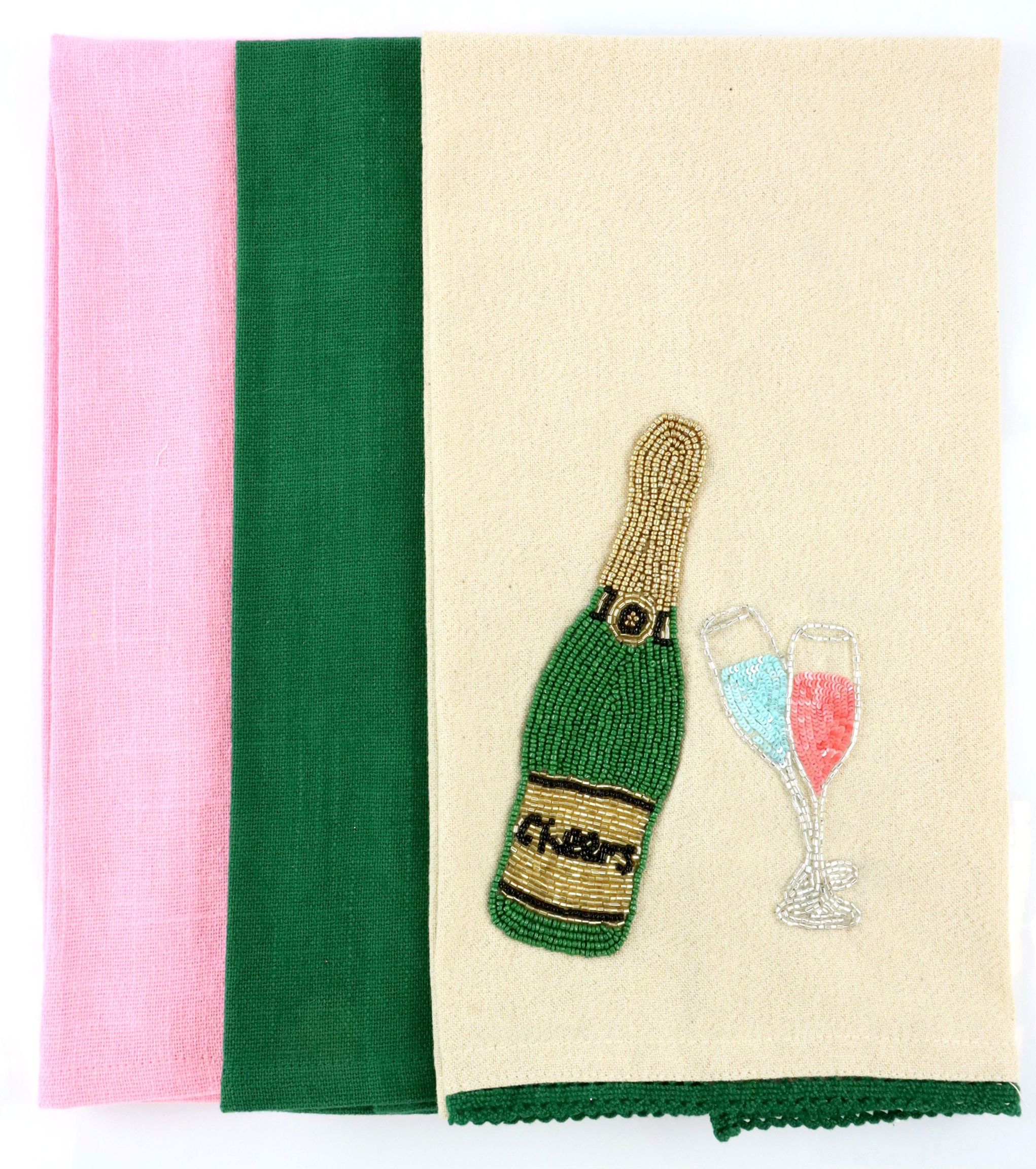 Feiern Sie die festliche Jahreszeit stilvoll mit unserem exklusiven Küchentücherset „Champagne Party“. Dieses dreiteilige Set, speziell für die Weihnachtssaison entworfen, bringt Farbe und Eleganz in jede Küche. Jedes Tuch ist liebevoll gefertigt aus 100% hochwertiger Baumwolle, um sowohl Funktionalität als auch ästhetische Anziehungskraft zu gewährleisten. Mit den fröhlichen Farben Rosa, Grün und Creme ergänzt es perfekt die saisonale Dekoration Ihres Einzelhandelsgeschäfts und hinterlässt einen bleibenden Eindruck bei Ihren Kunden.