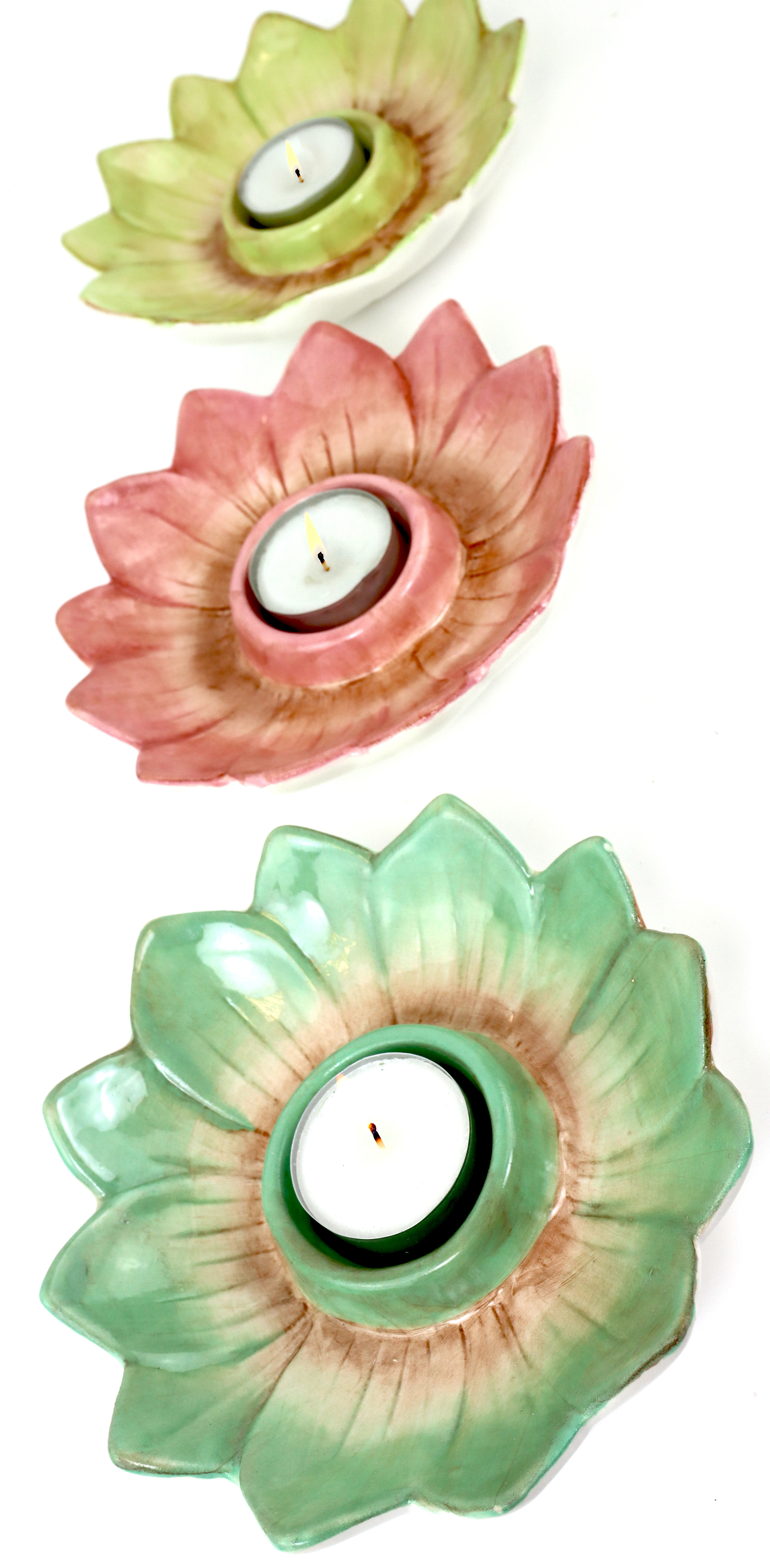 - Dreiteiliges Kerzenhalter-Set in Form von Lotusblüten