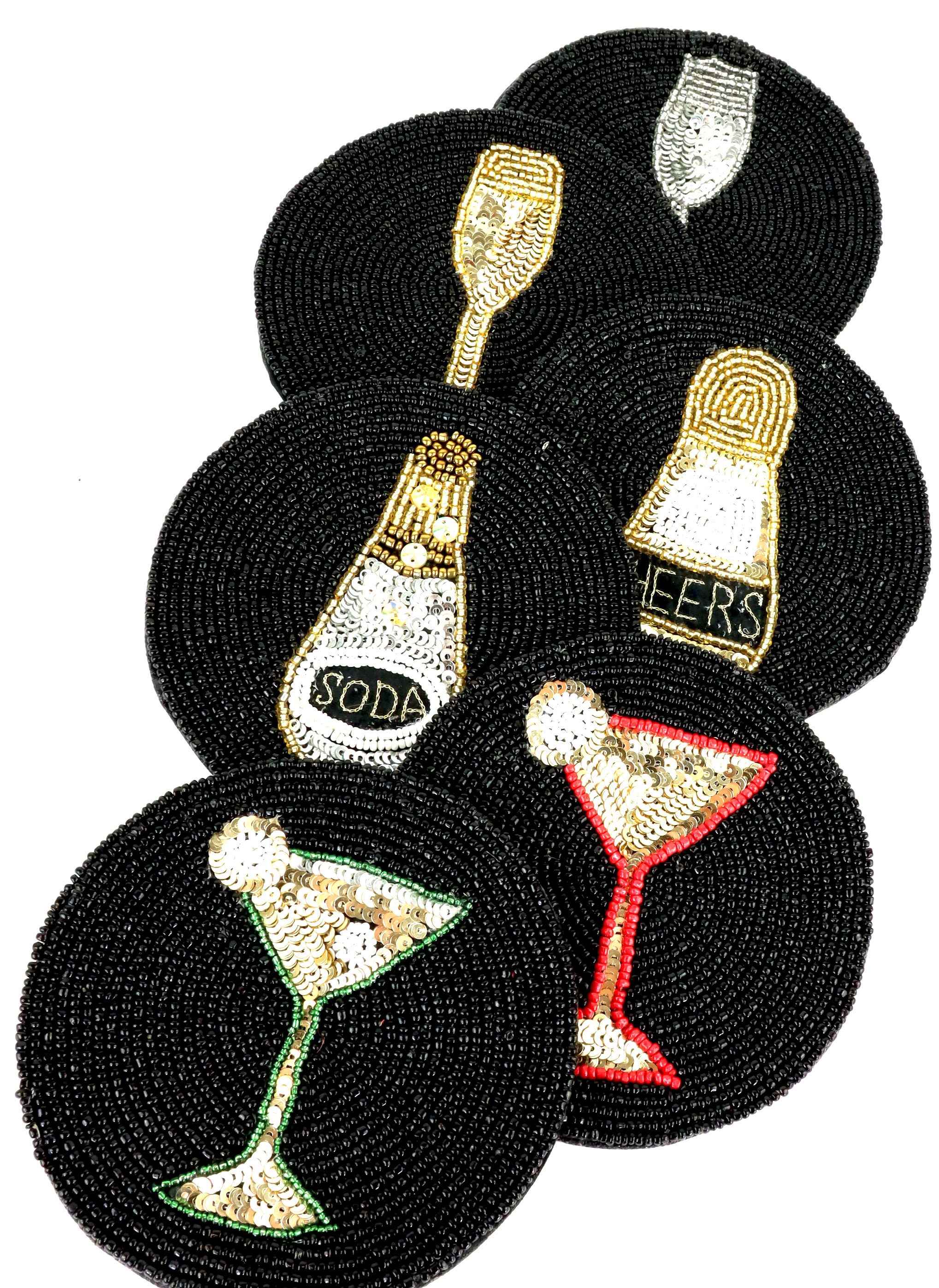 Die Perlenuntersetzer "Santé" präsentieren sich in einem eleganten Schwarz und sind mit bezaubernden Cocktailmotiven versehen, die direkt ins Auge fallen. Hergestellt aus einer robusten Mischung von Kunststoff und Polyester, bieten diese Untersetzer nicht nur außergewöhnliche Langlebigkeit, sondern auch einen zuverlässigen Schutz für Ihre hochwertigen Möbel. Die Wahl der Materialien sorgt zudem dafür, dass die Untersetzer leicht zu reinigen und äußerst pflegeleicht sind.