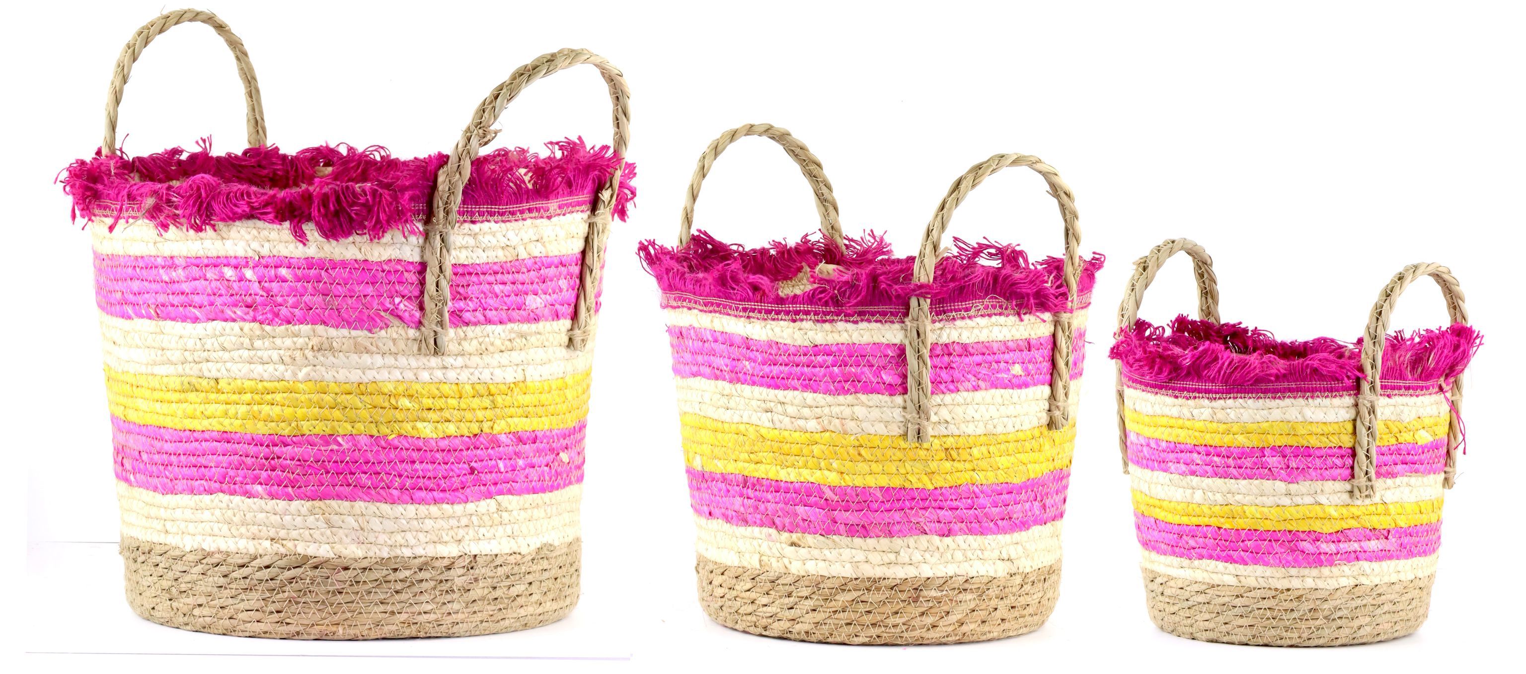 Steigern Sie die Anziehungskraft Ihres Ladengeschäfts durch die Bereitstellung dieser dekorativen und funktionalen Körbe, die Ihre Kundschaft dazu inspirieren werden, ihre eigenen Wohnräume auf kreative Weise neu zu gestalten. Dank des einladenden Designs und der hochwertigen Verarbeitung sind die Wohnkörbe "Zahara Stripes" mehr als nur Aufbewahrungslösungen – sie sind ein Statement für Stil und ökologische Verantwortung.