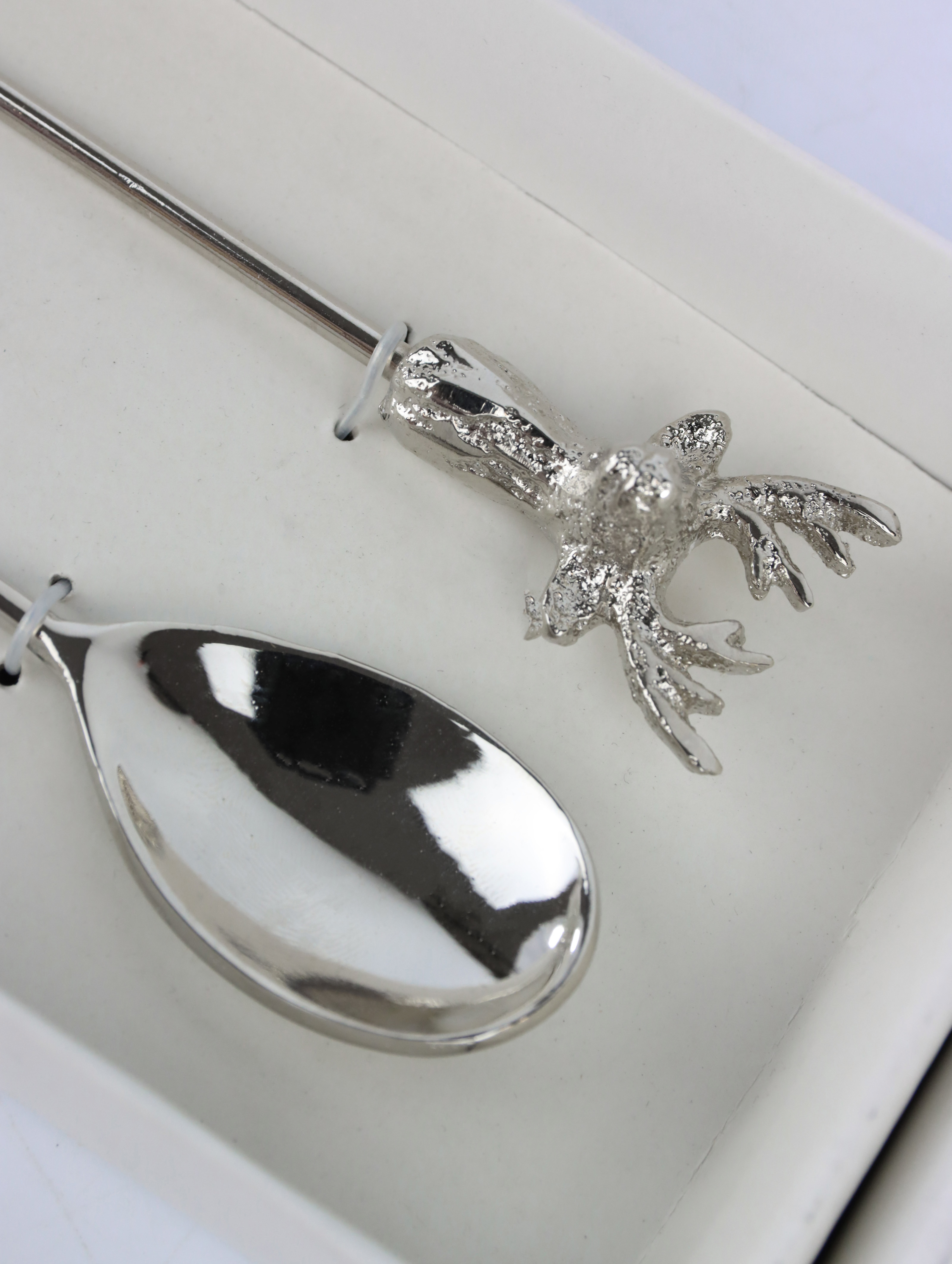 Unser extravagantes 2-teiliges Set, gefertigt aus hochwertigem Nickel in strahlendem Silber, verbindet innovative Formen mit traditionellem Handwerk. Die LANGSTIELLÖFFEL "HIRSCH" S/2 sind mit ca. 24cm die perfekte Länge, um sowohl Funktionalität als auch Ästhetik zu garantieren.