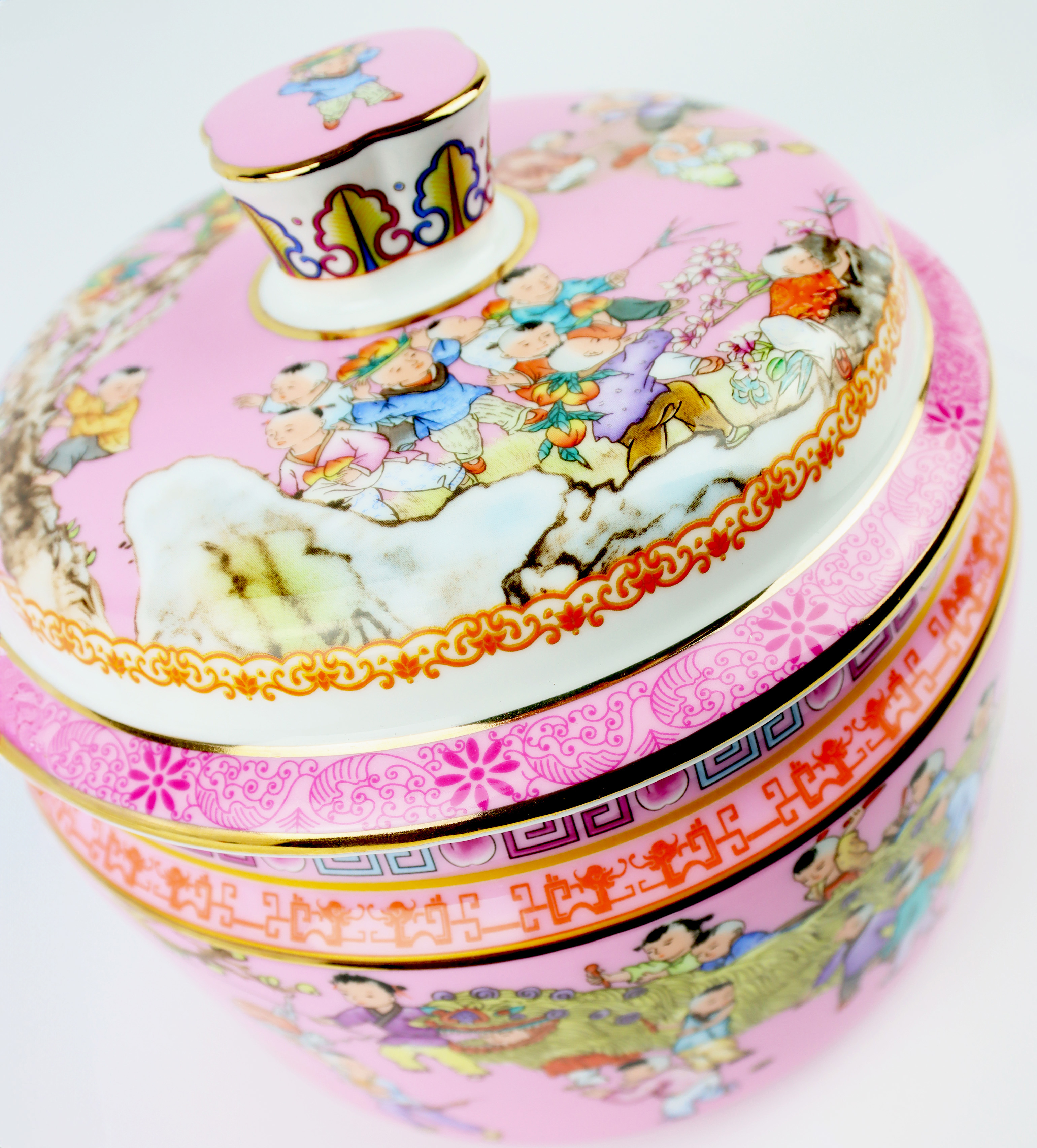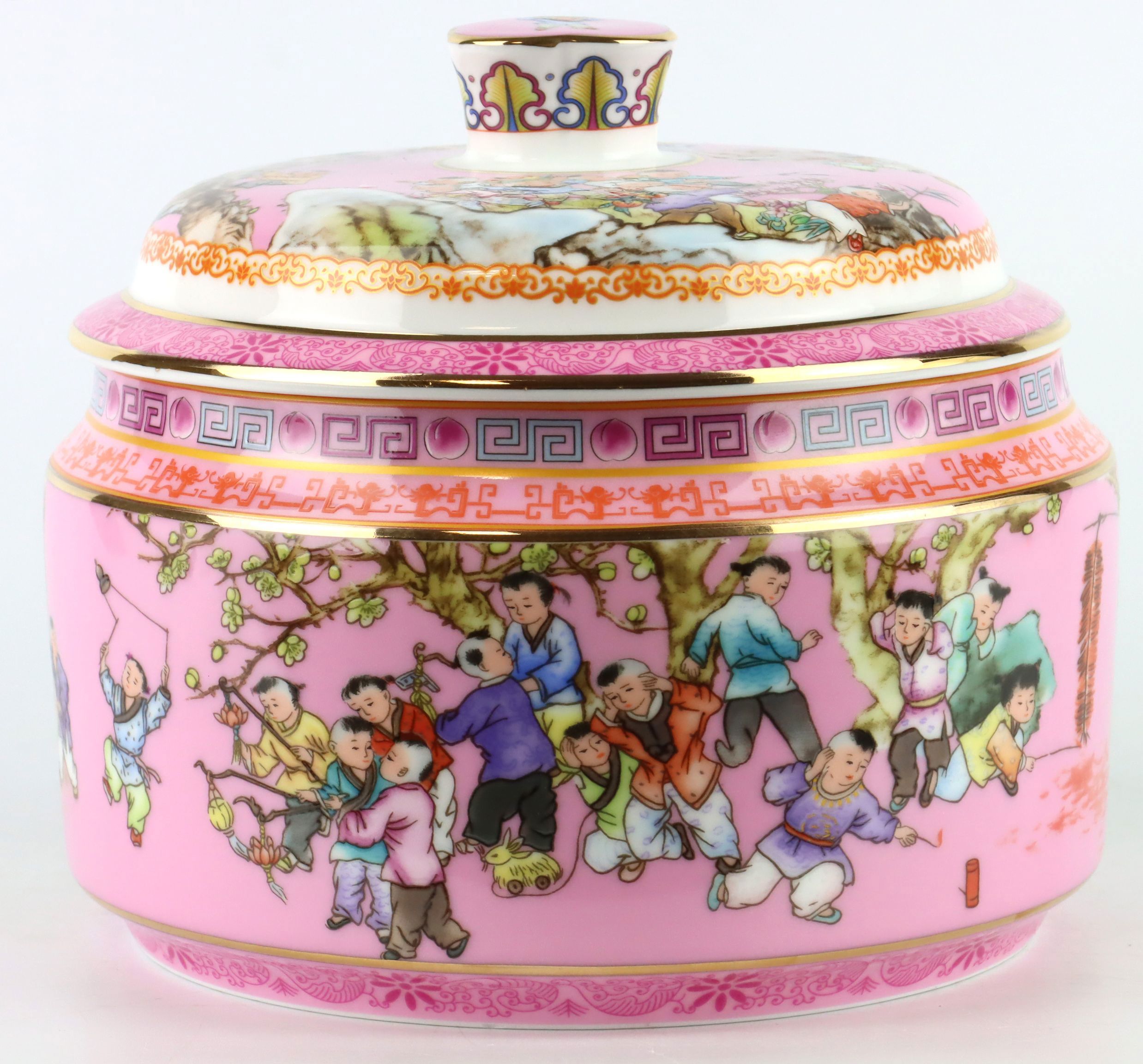 Entdecken Sie die exquisite Objektdose "Chinese Children" aus Porzellan – ein außergewöhnliches Dekorationsstück, das jedem Raum im Bereich Wohnen und Lifestyle eine elegante und zugleich kulturell inspirierte Note verleiht. Diese Porzellandose zeichnet sich durch ein harmonisches Design aus chinesischen Blumen in zartem Rosa aus und ist somit ein idealer Blickfang für jedes Regal oder Sideboard.