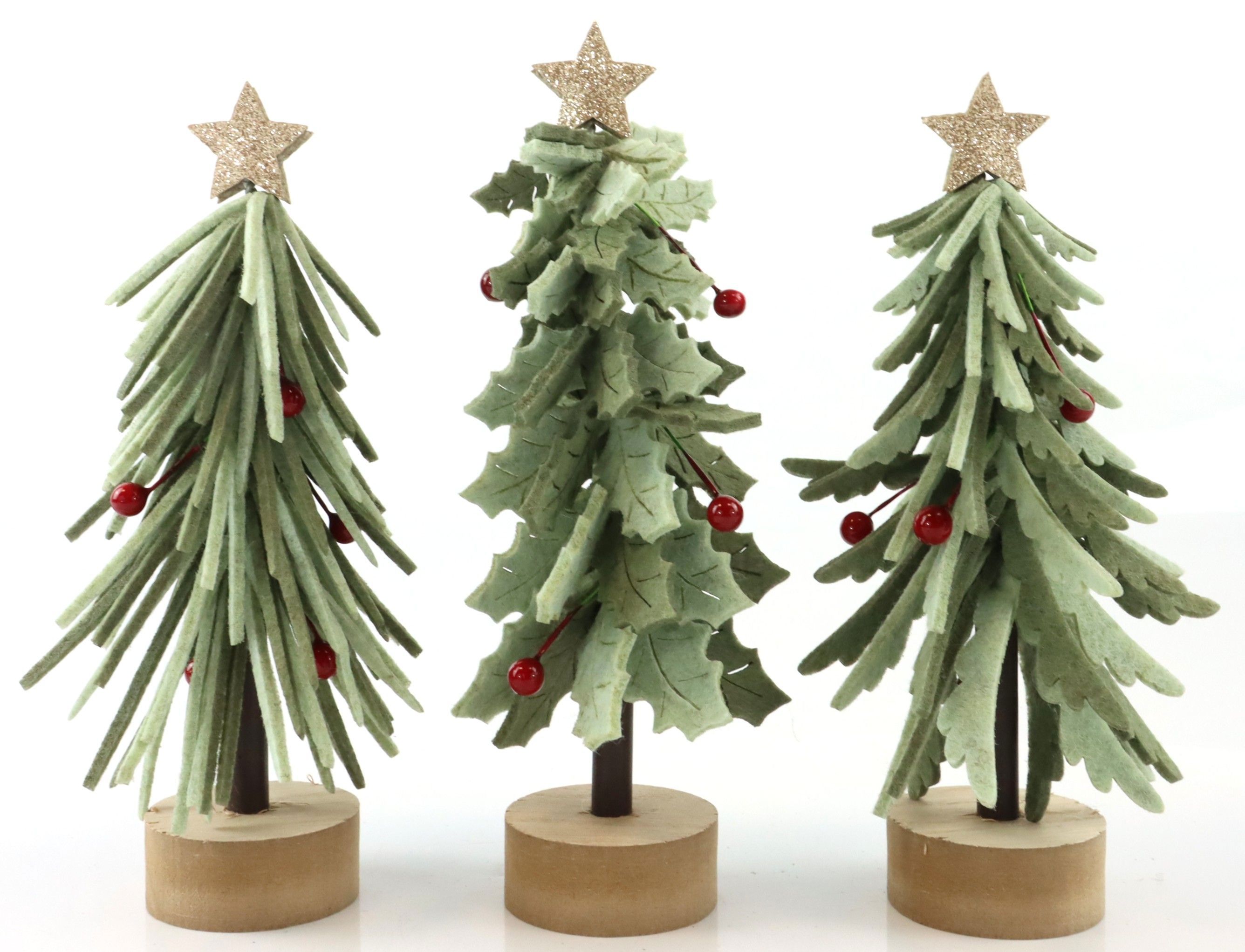 - 3-teiliges Tannenbäumchen-Set aus Filz und Holz
