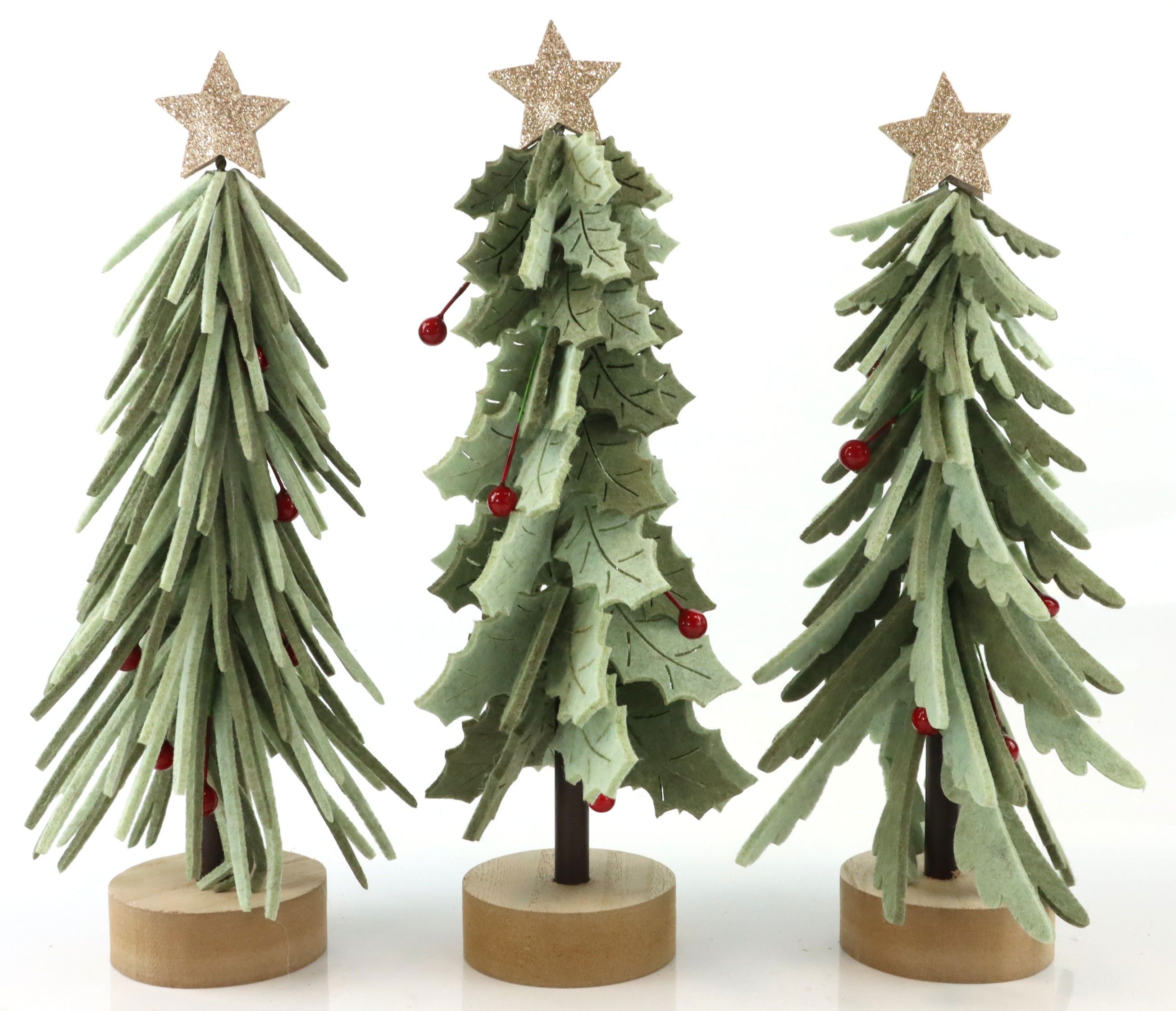 - Drei dekorative Tannenbäume aus Filz und Holz