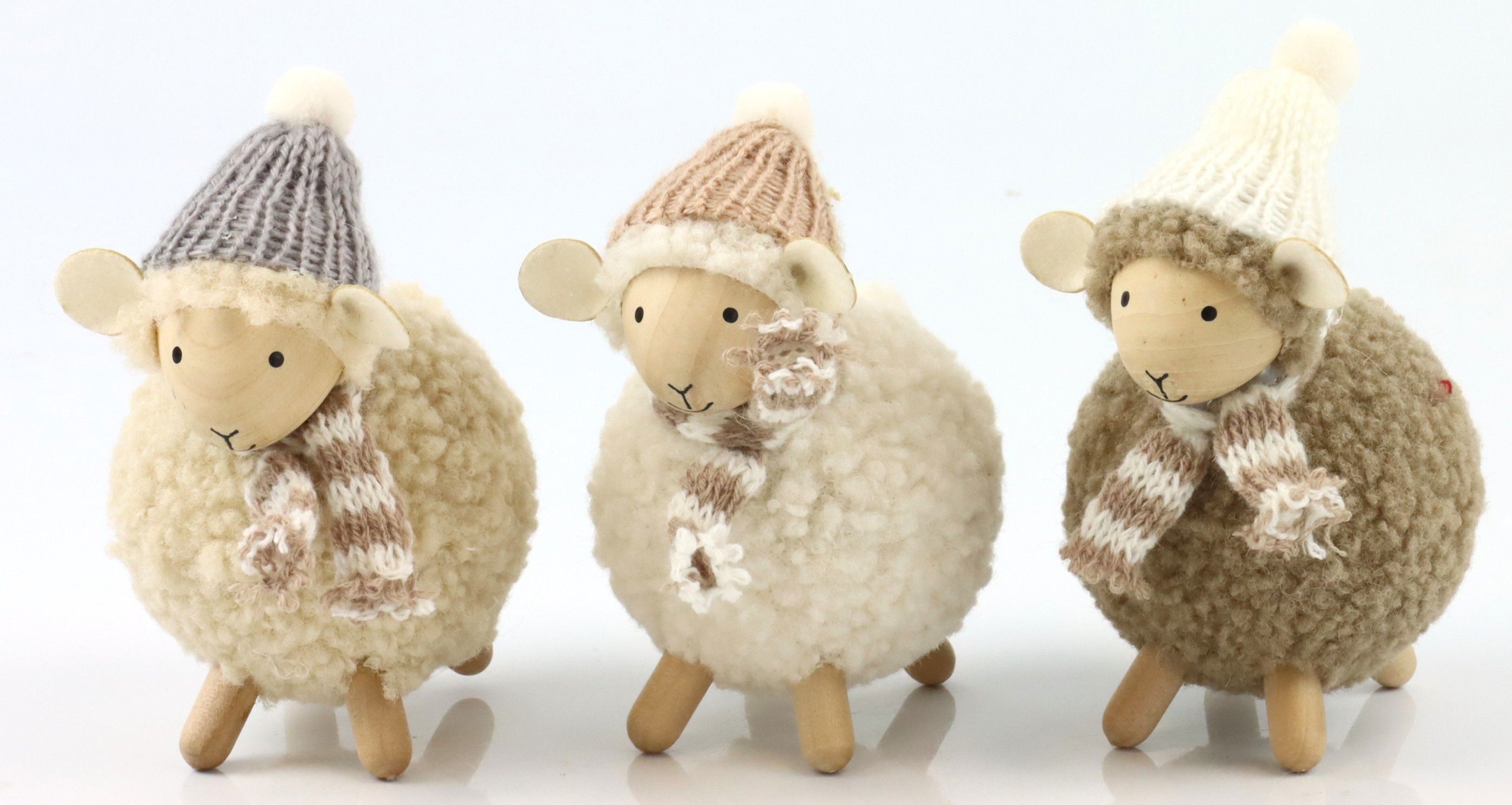 - Dreiteiliges Schafset in den Farben Weiß und Braun