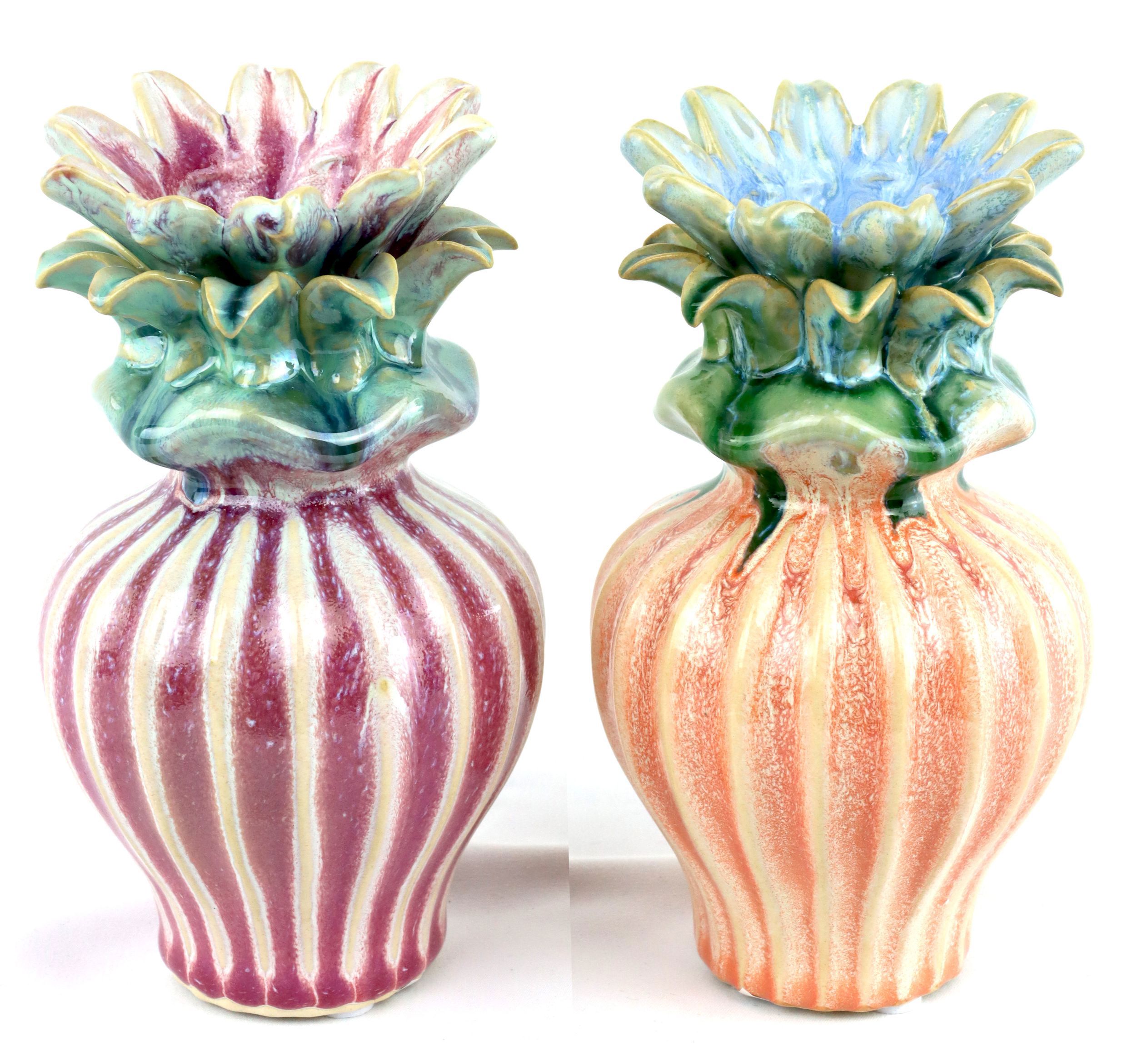 - Set aus zwei Keramikvasen im Farbverlauf von Rot und Orange