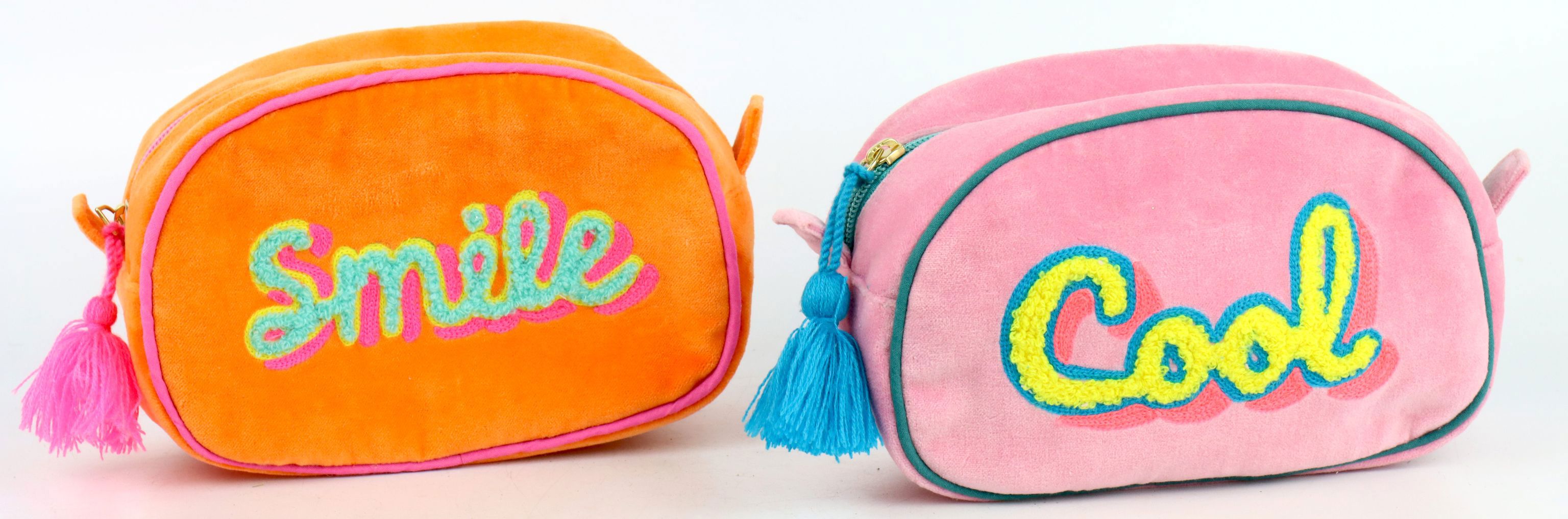Discover the stylish and practical toiletry bag set "FANCY" S/2 - a must-have for every lifestyle-orientated retailer in the home and lifestyle sector. This exquisite set of two toiletry bags, consisting of the designs "Smile" and "Cool", is the perfect addition to your shop's spring and summer assortment.