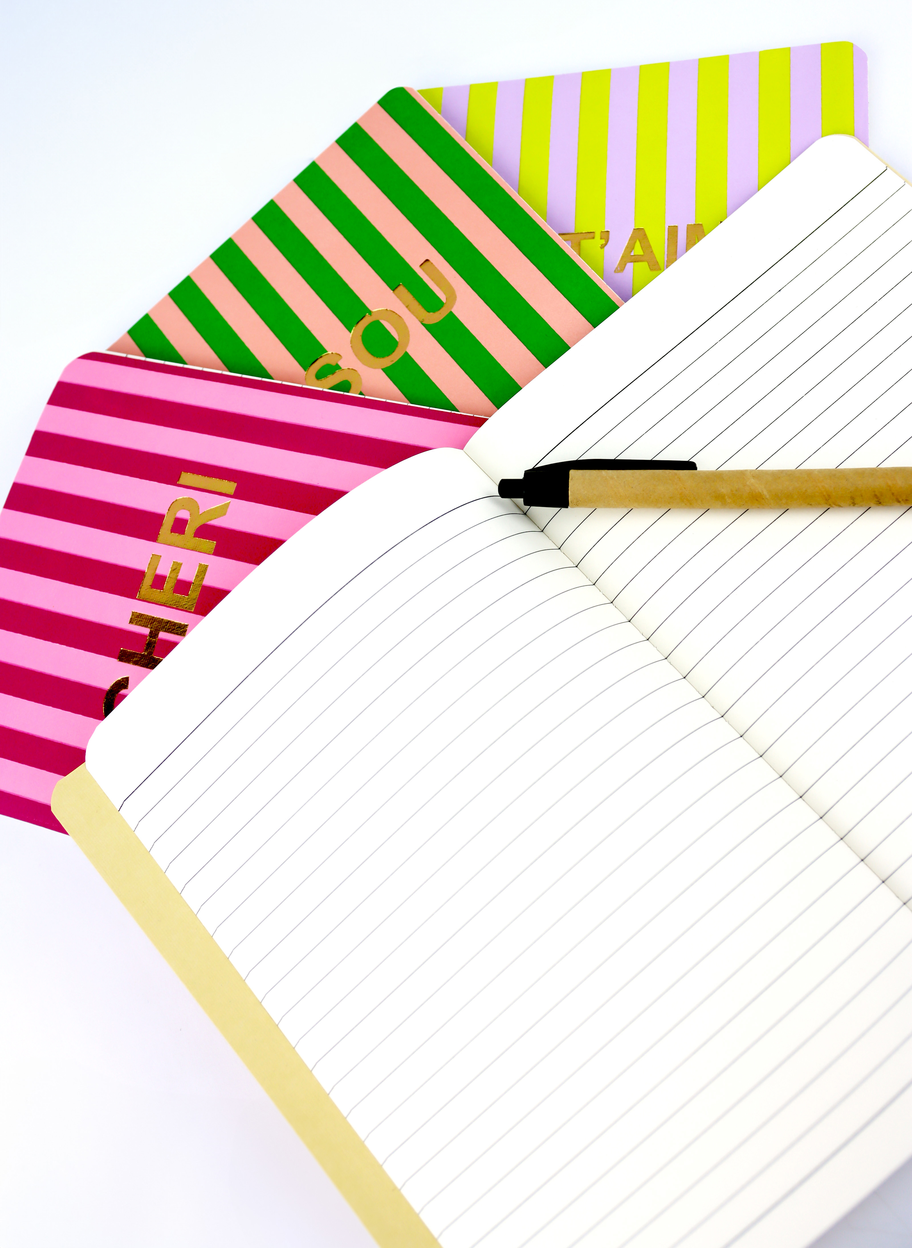 In a world where the visual experience is everything, the "Carnet" notebooks stand out with their colourful yet elegant appearance. The combination of bold and vibrant striped patterns ensures that these notebooks always attract attention on retail shelves. They particularly appeal to customers who value stylish stationery without compromising on quality.
