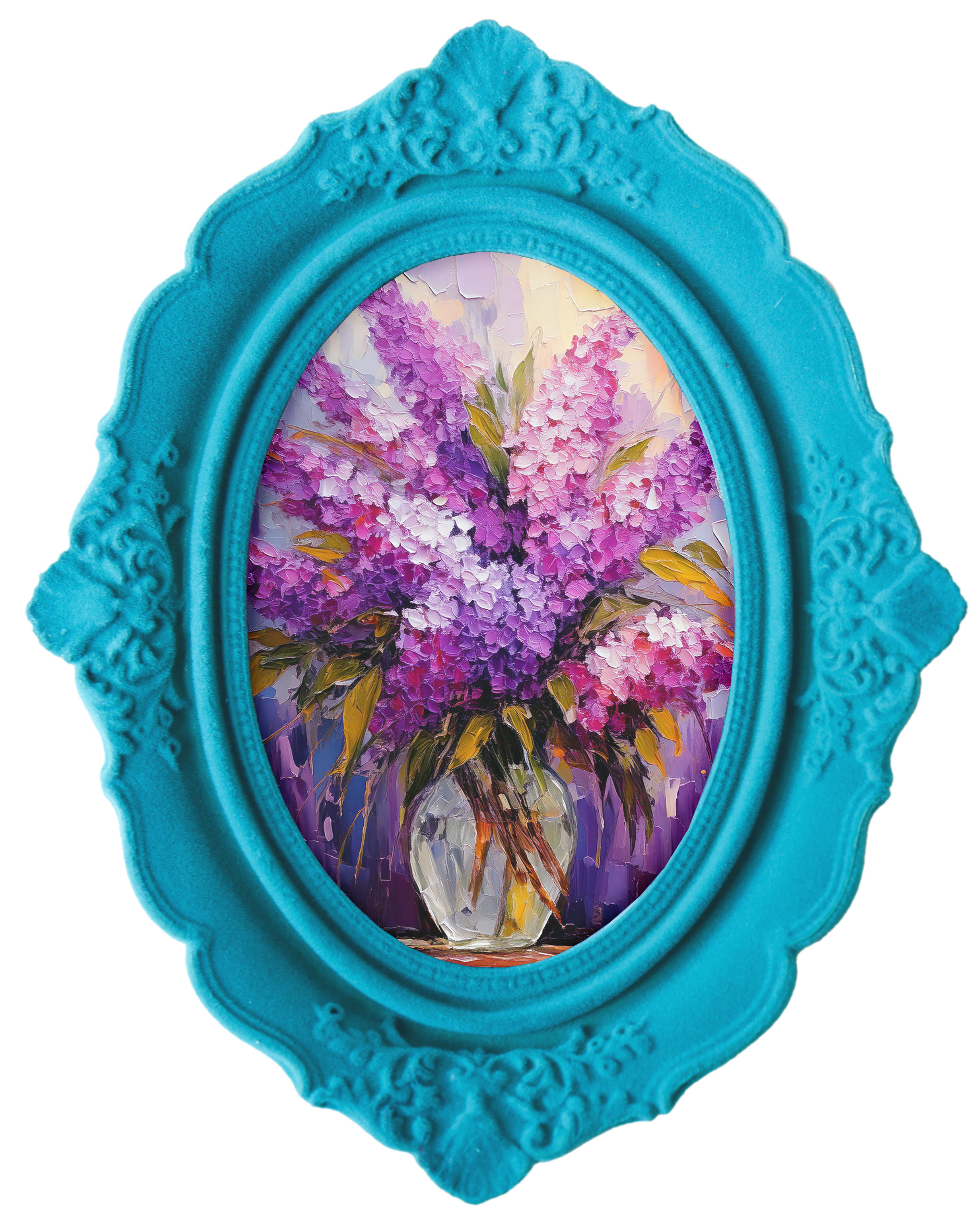 Whether in the living room, bedroom or office, this decorative piece can be easily combined with different furnishing styles and colour schemes. Its turquoise-coloured surface provides a vibrant contrast to darker walls and a harmonious balance to lighter rooms. It is also a perfect seasonal decoration for autumn and winter. The meticulous, handcrafted nature of this frame makes it a real highlight in the range and makes it a stylish gift idea for art lovers or for those who appreciate something special.