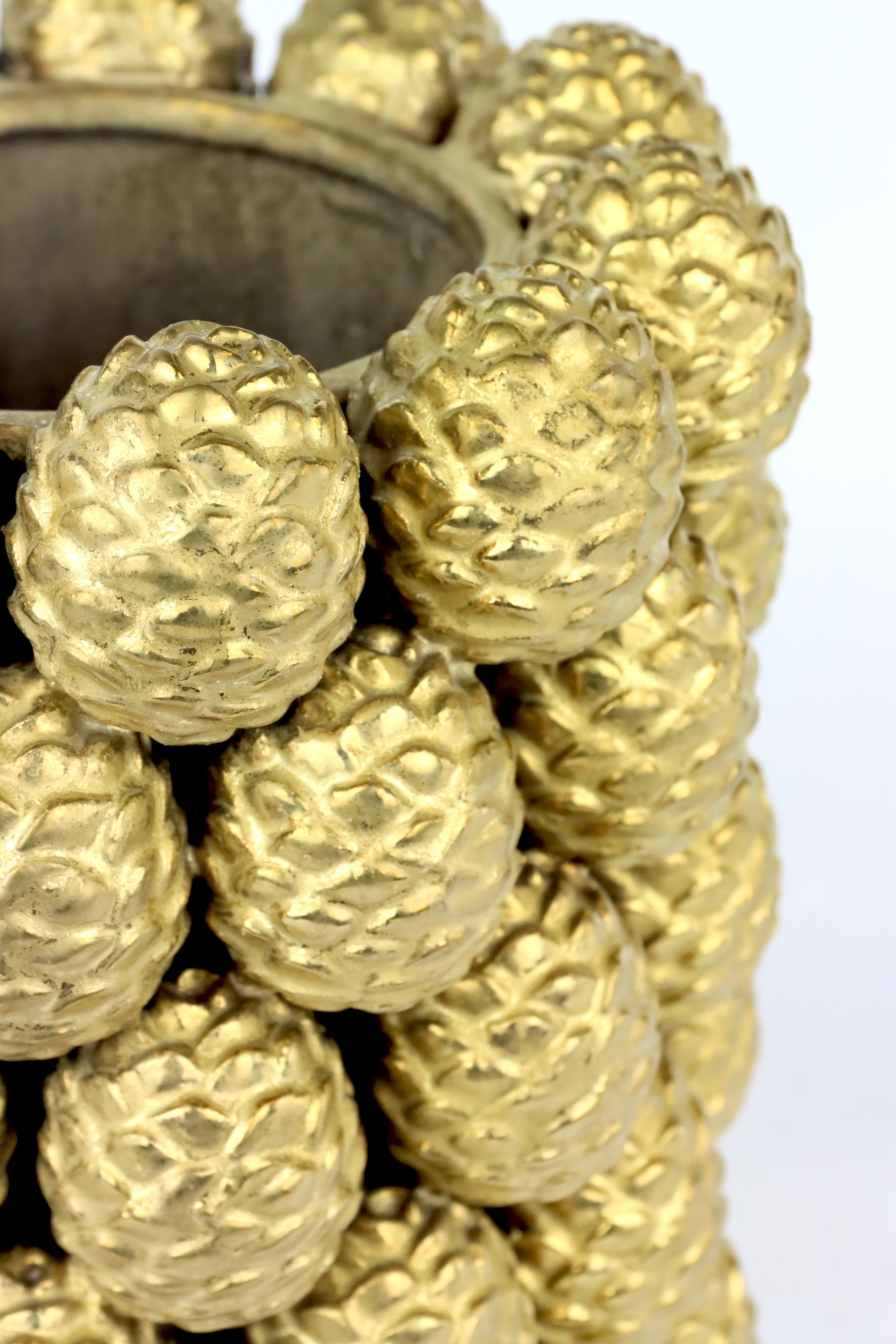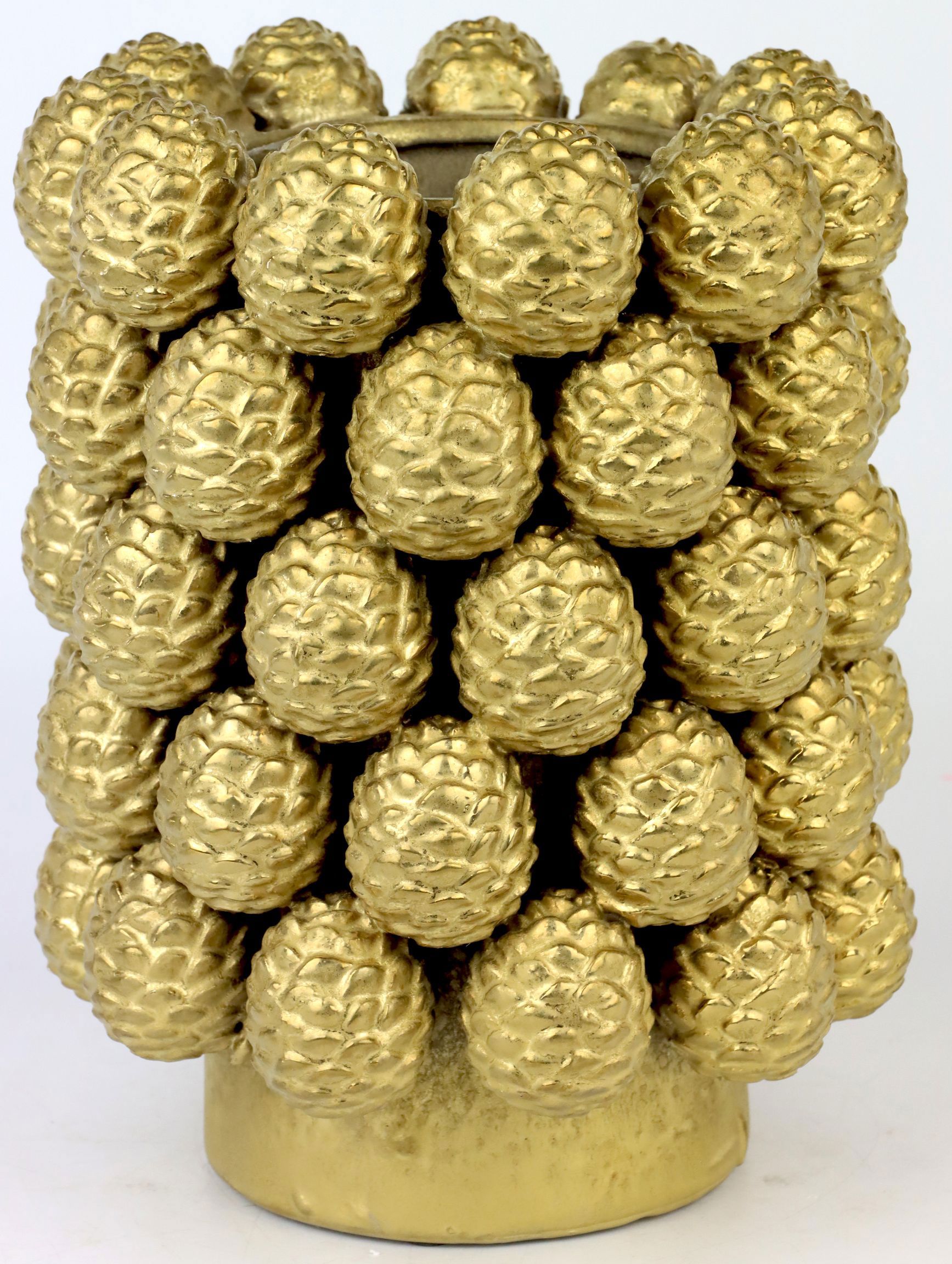 Keywords: vase pot, ceramic, pine cone design, rustic style, home accessory, lifestyle product, gold-coloured, autumn/winter decoration.