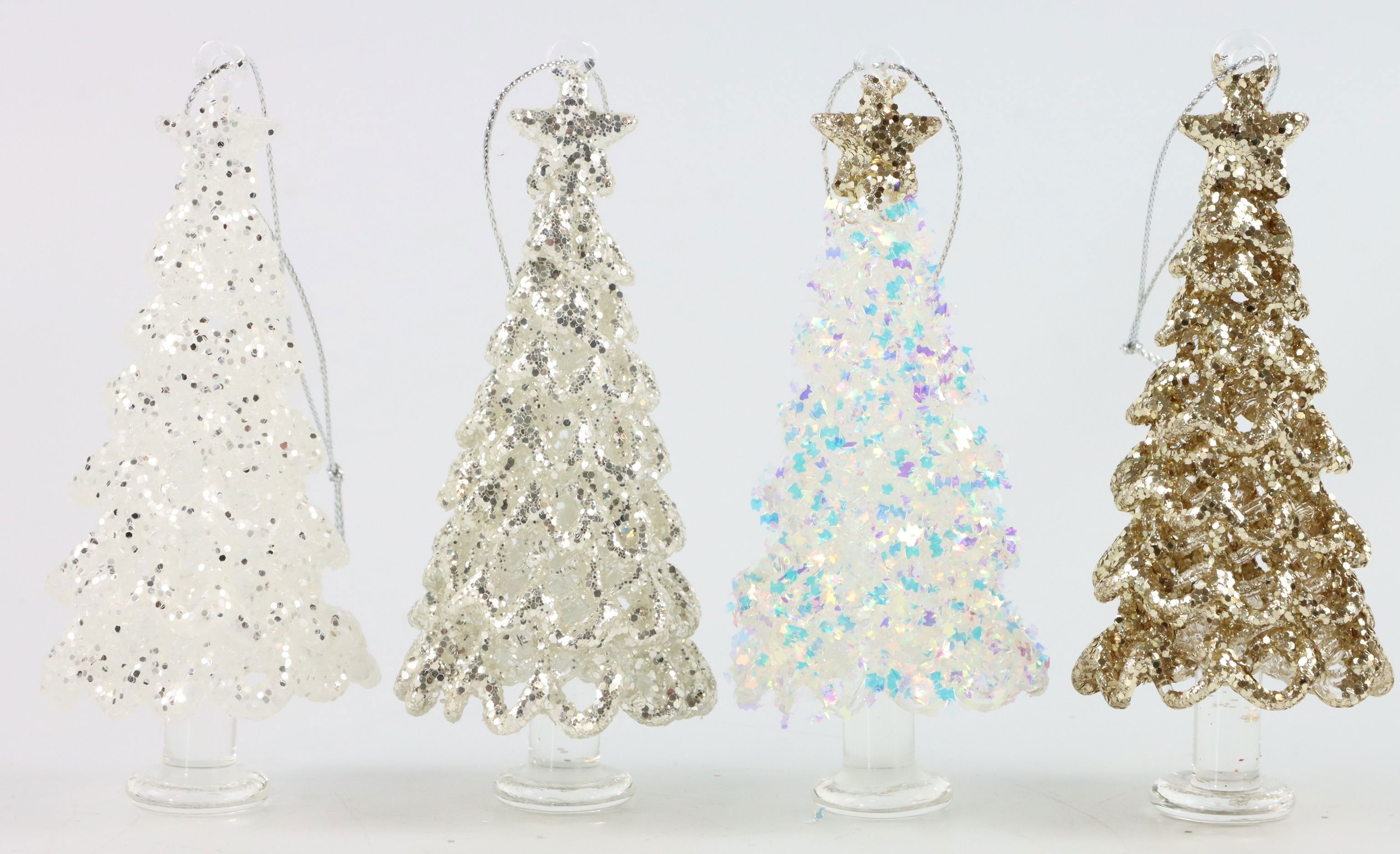 ENBring the centrepiece of your Christmas decorations into your home - our unique "Crystal Tree" glass ornaments. With item number 8167, this charmingly designed, four-piece set made of glass will be an irresistible eye-catcher in your Advent season. The "crystal trees" are handmade and measure approx. 12 cm. They are not only a stylish accessory for any home or salesroom, but also an ideal Christmas gift for customers, employees or dear friends.