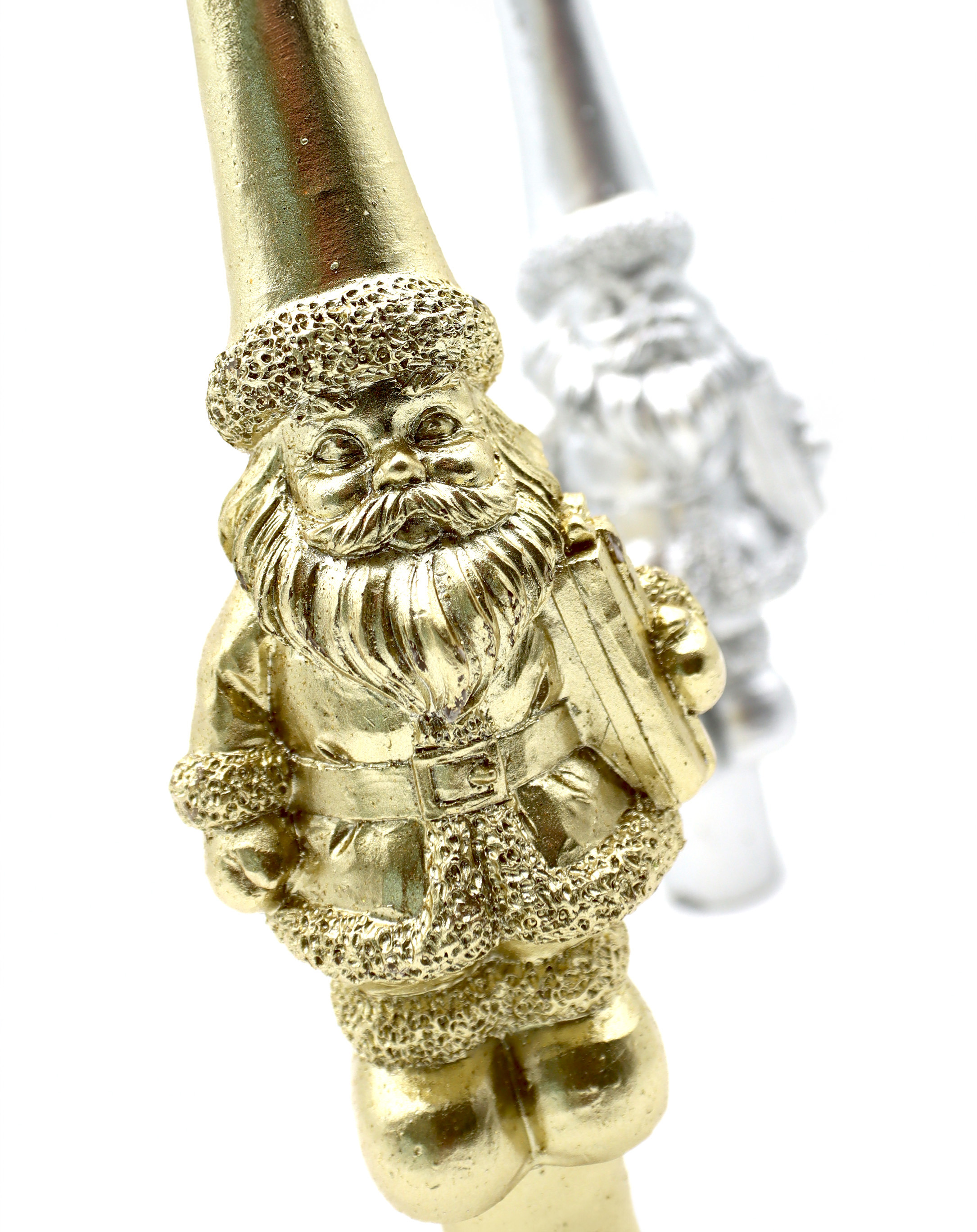 This 2-piece set consists of finely crafted stick candles in the classic Christmas colours of gold and silver. Each candle is around 20 cm high and made from high-quality candle wax, making them a durable and decorative element for the modern living area. The detailed design in the shape of Father Christmas not only makes children's eyes light up, but also adds a festive touch to any room.