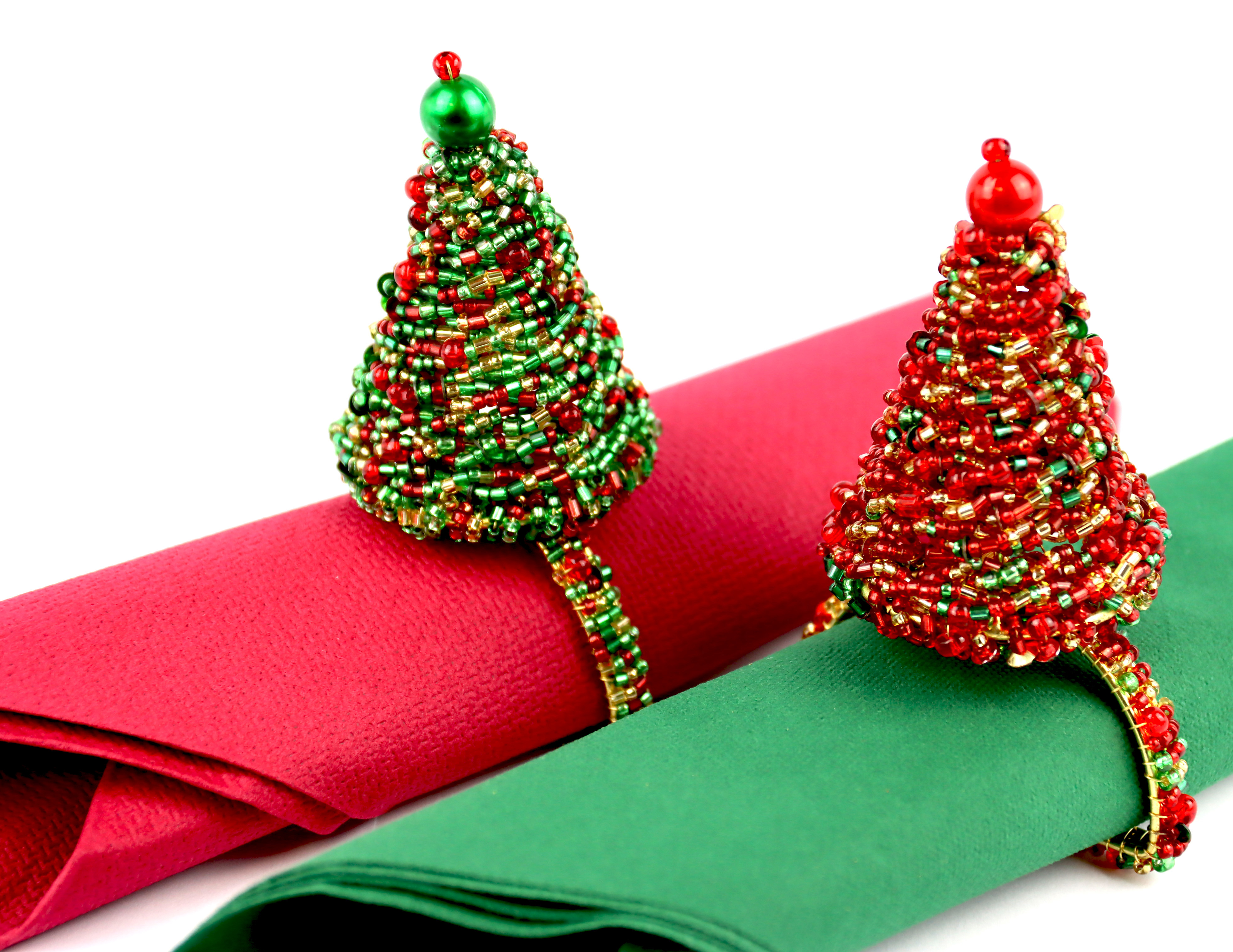 - **Design:** Christmas tree napkin rings made of metal, acrylic and cotton