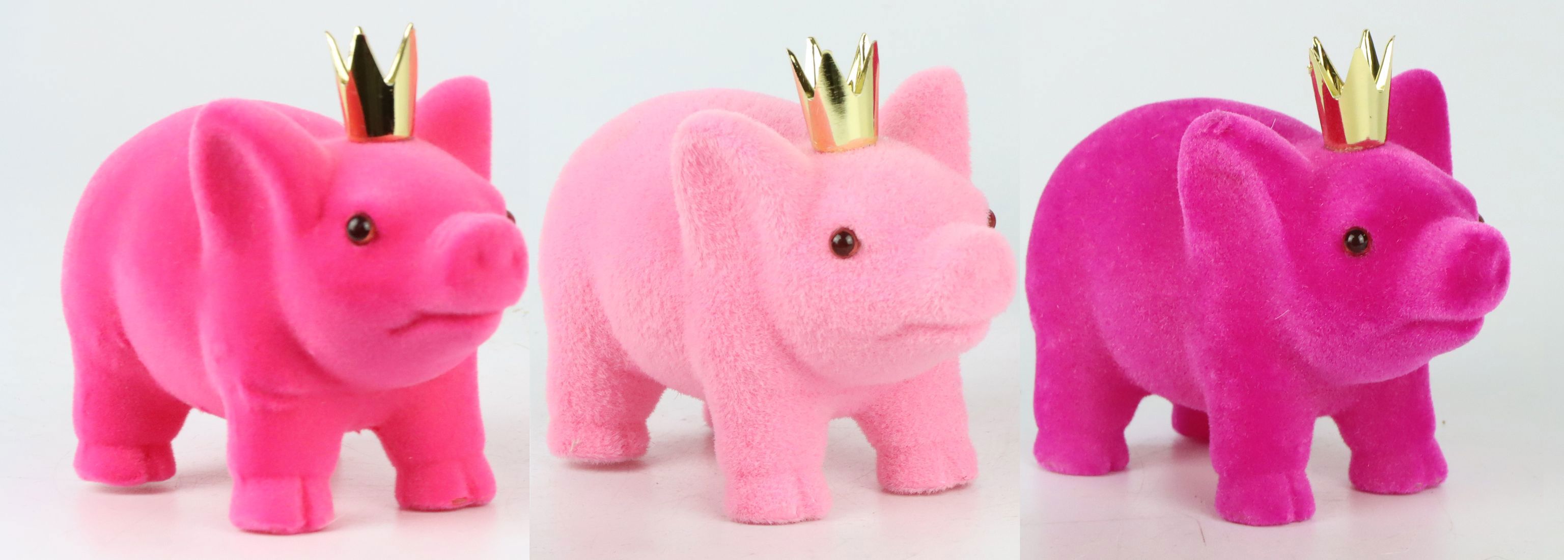 Our "Royal Pigs" are made of high-quality material and impress with their careful workmanship and loving details. Each pig in the set radiates individuality and blends seamlessly into a variety of interior styles - be it modern, classic or Scandinavian. The enchanting figures are ideal for shop window decorations or shop displays and will elevate your range to a sophisticated level.