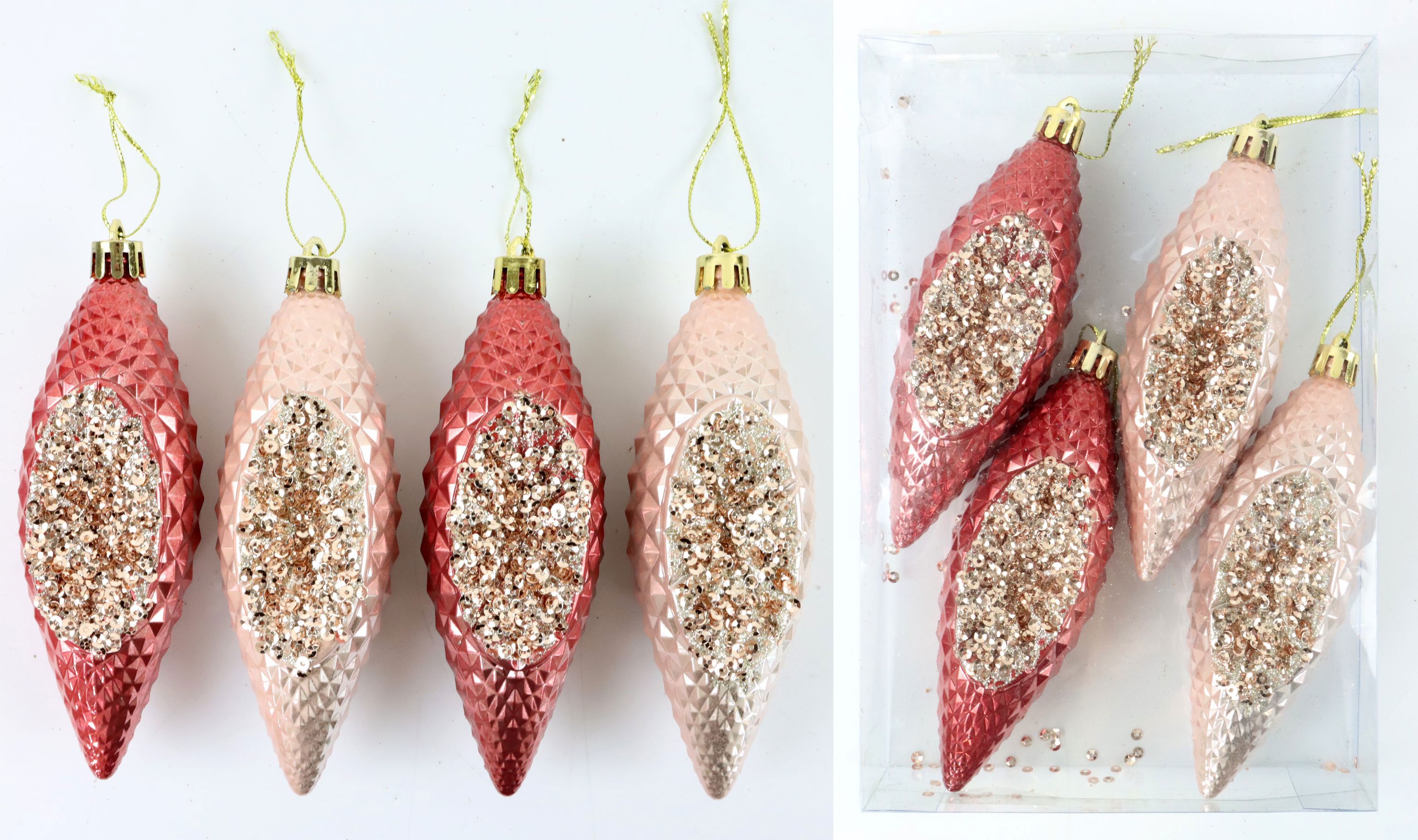 Discover the festive elegance of our "Rosé" ornaments in a practical 4-piece set. Specially developed for stationary retail in the home and lifestyle sector, these delicate Christmas ornaments are a real eye-catcher in any decoration. Made from high-quality plastic, the hangers not only impress with their elegant rose-coloured look, but also with their light weight and durable quality. Whether a classic Christmas tree or a modern shop window design - with these ornaments you can create an atmosphere of grace and favour.