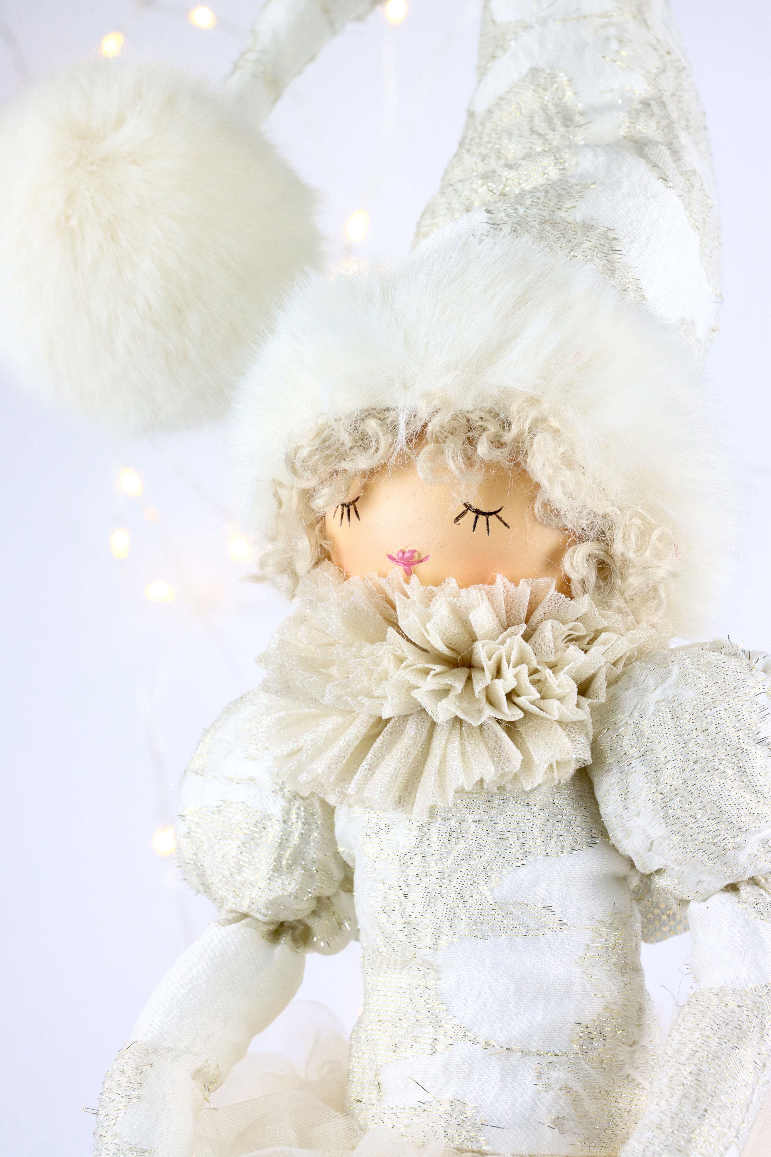 ENStart the Christmas season in style with our "Santa Lucia" angel figurine. Our range, item number 5581, is a beautiful decoration that will add a festive and welcoming atmosphere to any room. This exquisite white angel figurine is a symbol of calm and peace, just what you need for the perfect Christmas spirit in your home and lifestyle area. Our "Santa Lucia" is made of high-quality cotton polyester plastic and wood and is a real eye-catcher with a size of approx. 70 cm.