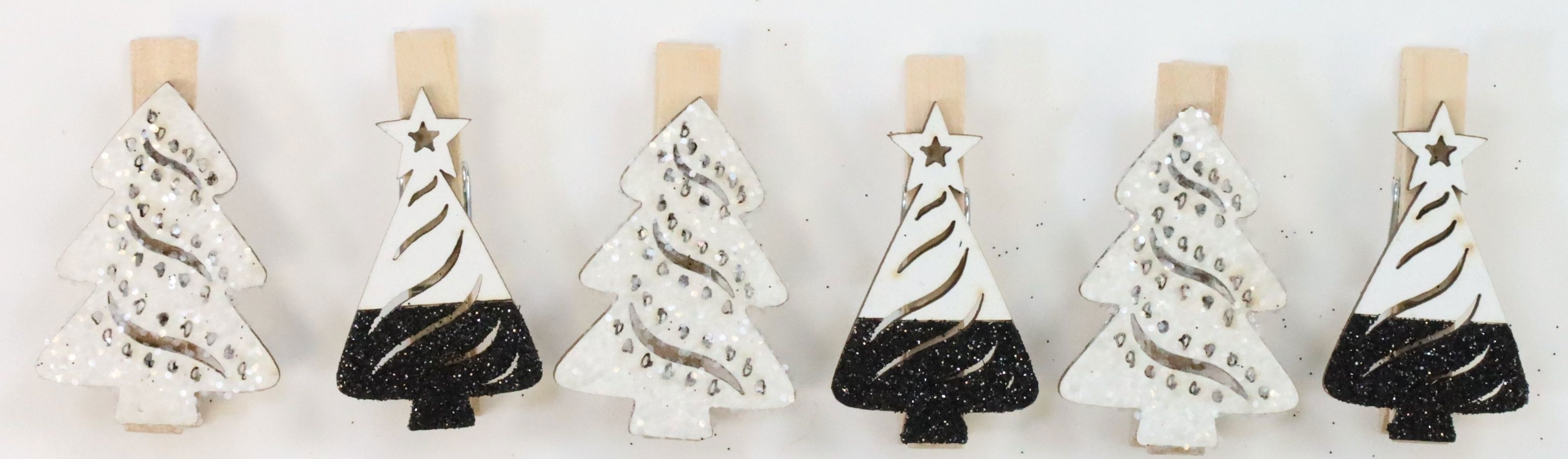 Experience a festive season full of elegance and style with our high-quality "Trees" clasp set. This six-piece set, consisting of carefully crafted staples, is specially designed for discerning bricks-and-mortar retailers in the home and lifestyle sector. Each clip features a charming tree design in classic black and white, made from durable wood and resin. These decorative staples are a versatile addition to your seasonal display solutions and add a festive touch to any arrangement.