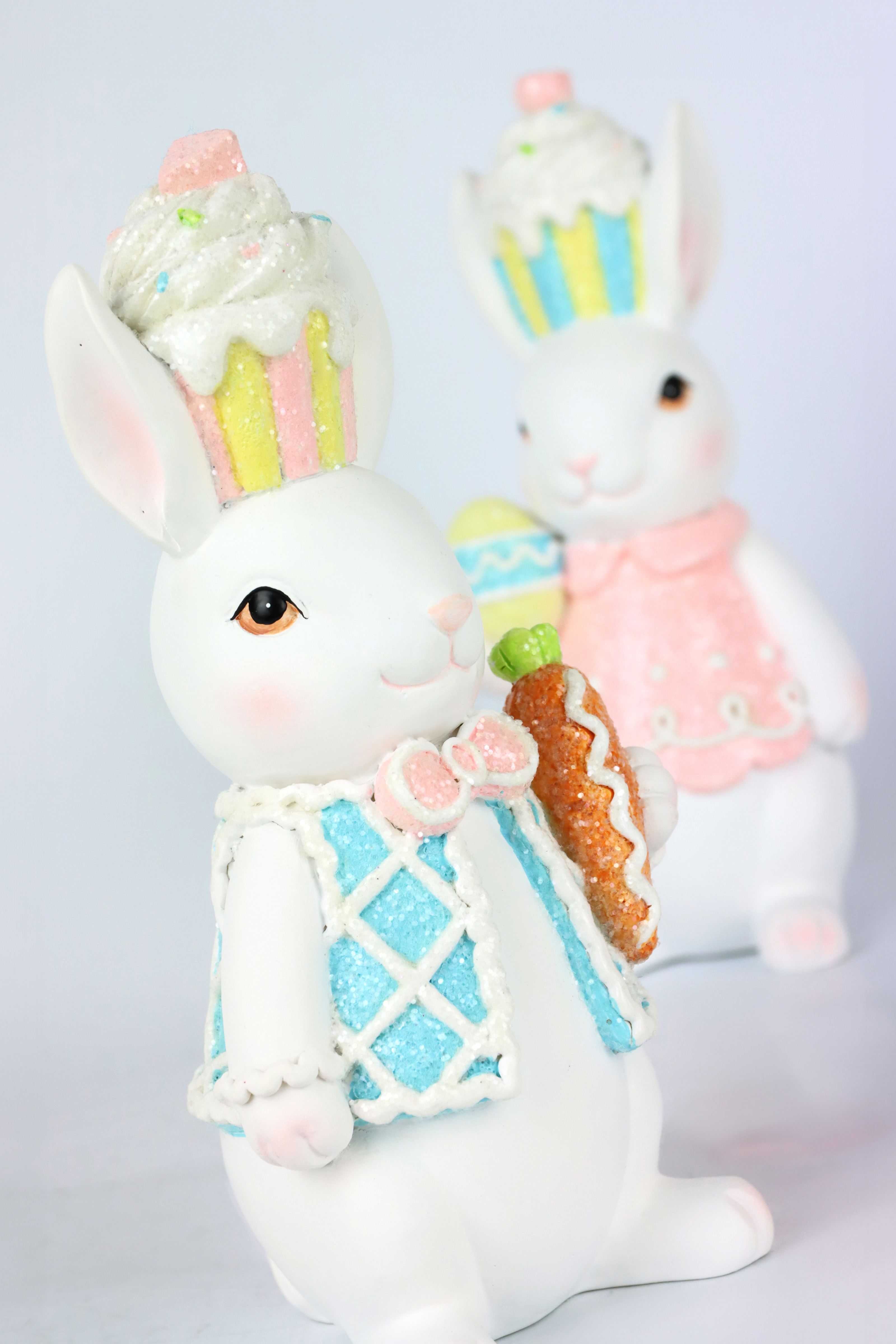 Let your customers welcome the cheerful spirit of Easter with our exclusive "BUNNY CANDY PARTY" S/2 product set. This 2-piece set made of polyresin adds a playful and charming accent to your Easter collection. The two bunny figures, each around 16.8 cm high, are perfectly designed to enhance the ambience of any home and lifestyle decoration.