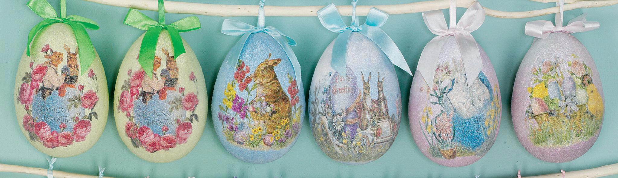 - Eye-catching decoration:** Set of six nostalgically designed hanging eggs measuring approx. 15 cm.