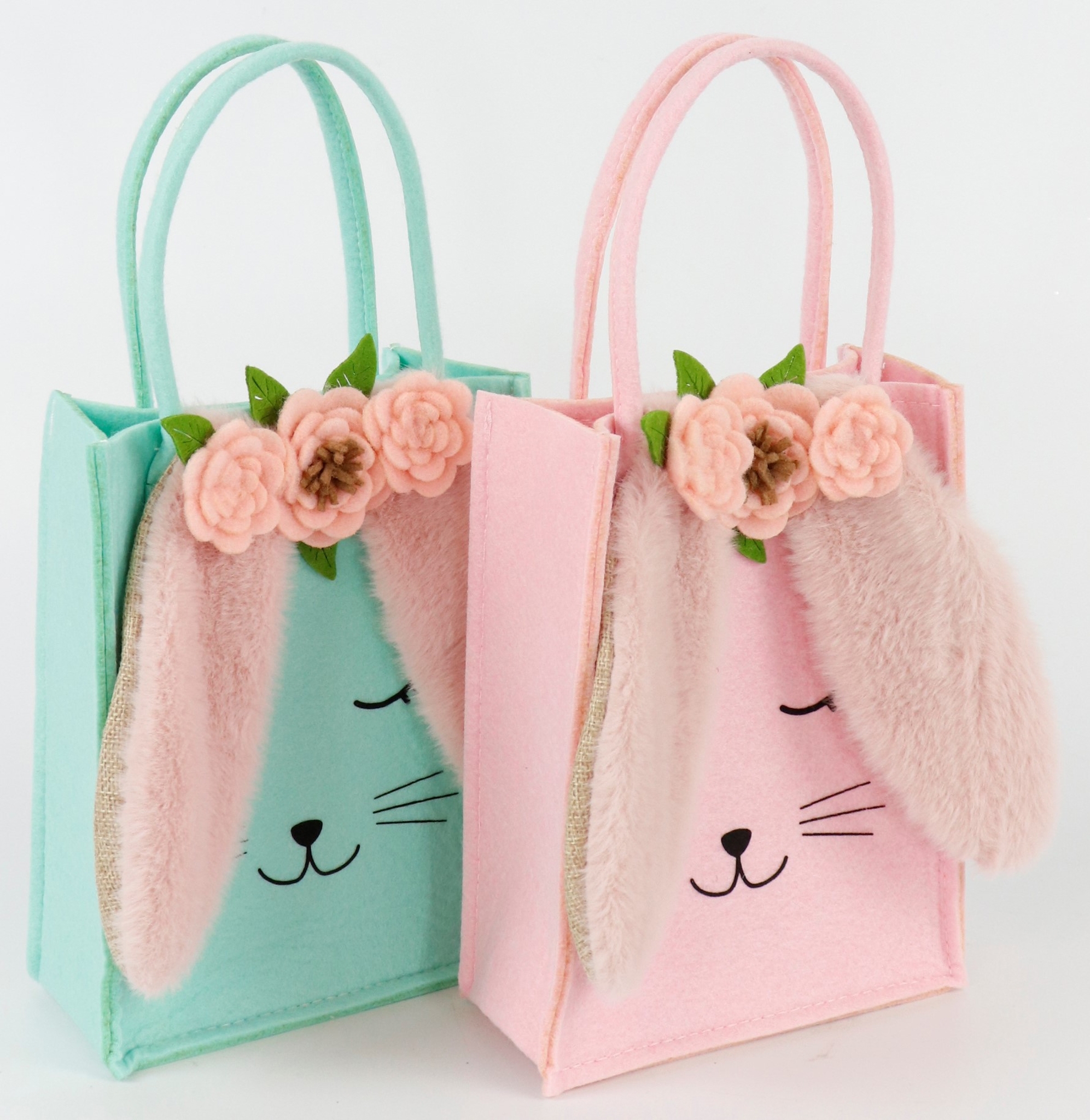 These felt bags not only impress with their cute floppy ear design, but also with their versatility. They can be used as Easter baskets, gift packaging or as a decorative accent in shop windows. The lovingly designed bunny ears give the bags a cheerful expression and create a warm-hearted atmosphere that will delight your customers. Felt is also a material that is characterised by its strength and suppleness and is often valued for its exceptional durability.