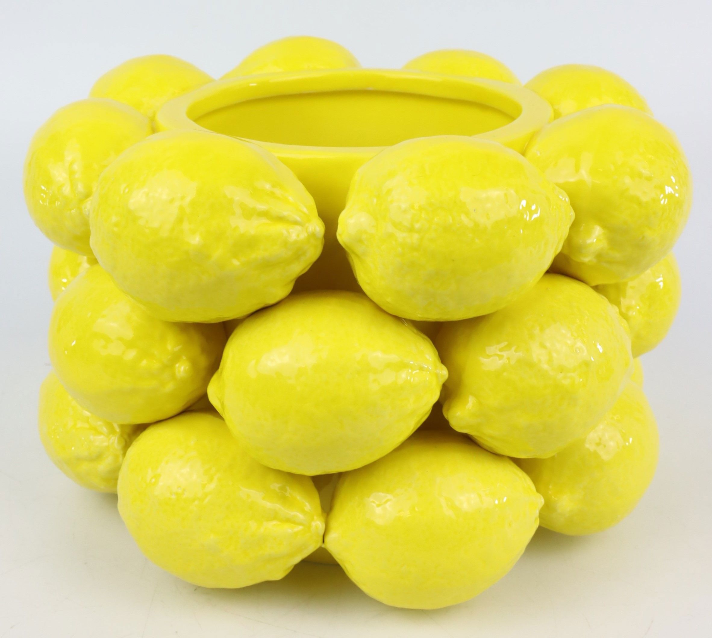 ENExperience the fresh breeze of spring and summer in your living room with our exquisite "LIMONE" planter. This high-quality ceramic planter in a vibrant yellow colour is reminiscent of the sunny lemon groves of Mediterranean landscapes and brings a refreshing lightness to any room. With a diameter of around 21 cm, this planter offers enough space for plants of various sizes and is also an impressive decorative element for your retail space.