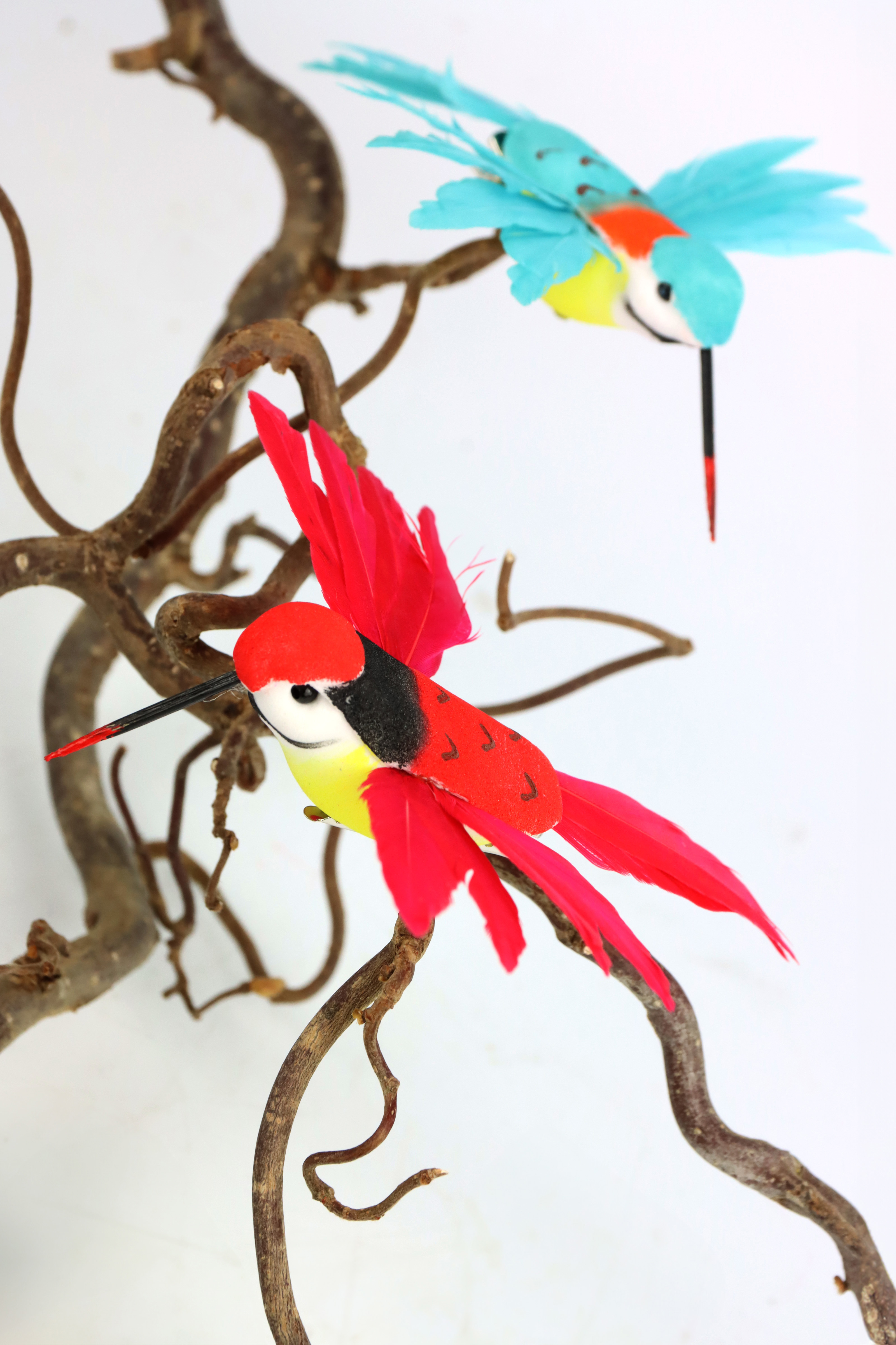 The "Beautiful Birds" clips impress with their filigree design made of high-quality polystyrene, bright artificial feathers and robust metal. Measuring around 10 cm in size, they are versatile and can be used anywhere to create stylish accents - whether in flower arrangements, on home accessories or as decoration on brochures and products. The lovingly designed artificial feathers give the birds a particularly authentic and lively look that will bring spring and summer to your decorations.