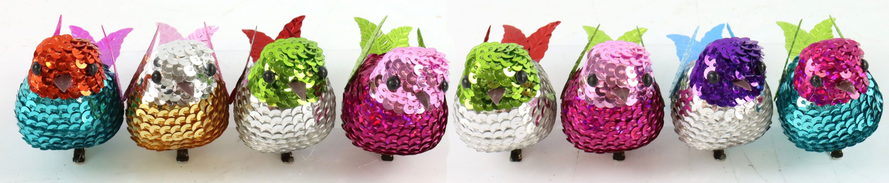 - Set contains 8 colourful clips with sequin embellishment in the shape of colourful birds.