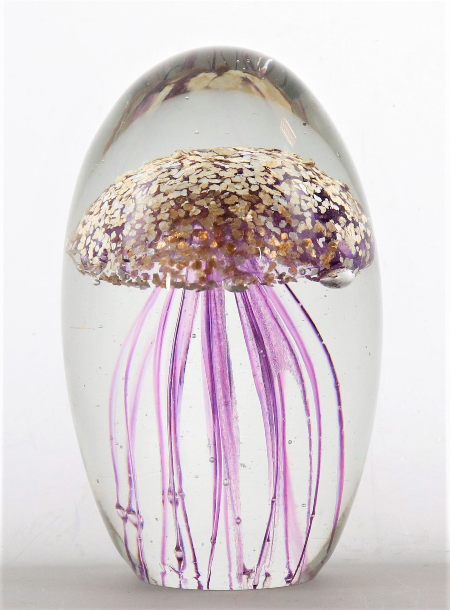 The PAPERWEIGHT "MEDUSA" with item number 5293 is more than just a simple paperweight; it is a real eye-catcher and an expression of elegance and creativity in your working environment. This unique paperweight, inspired by the fascinating shape of the jellyfish, brings a touch of luxury and individuality to any desk. The combination of deep purple with shimmering gold glitter creates an extraordinary colour composition that is reminiscent of the fantastic depths of the ocean and will brighten up your working environment.
