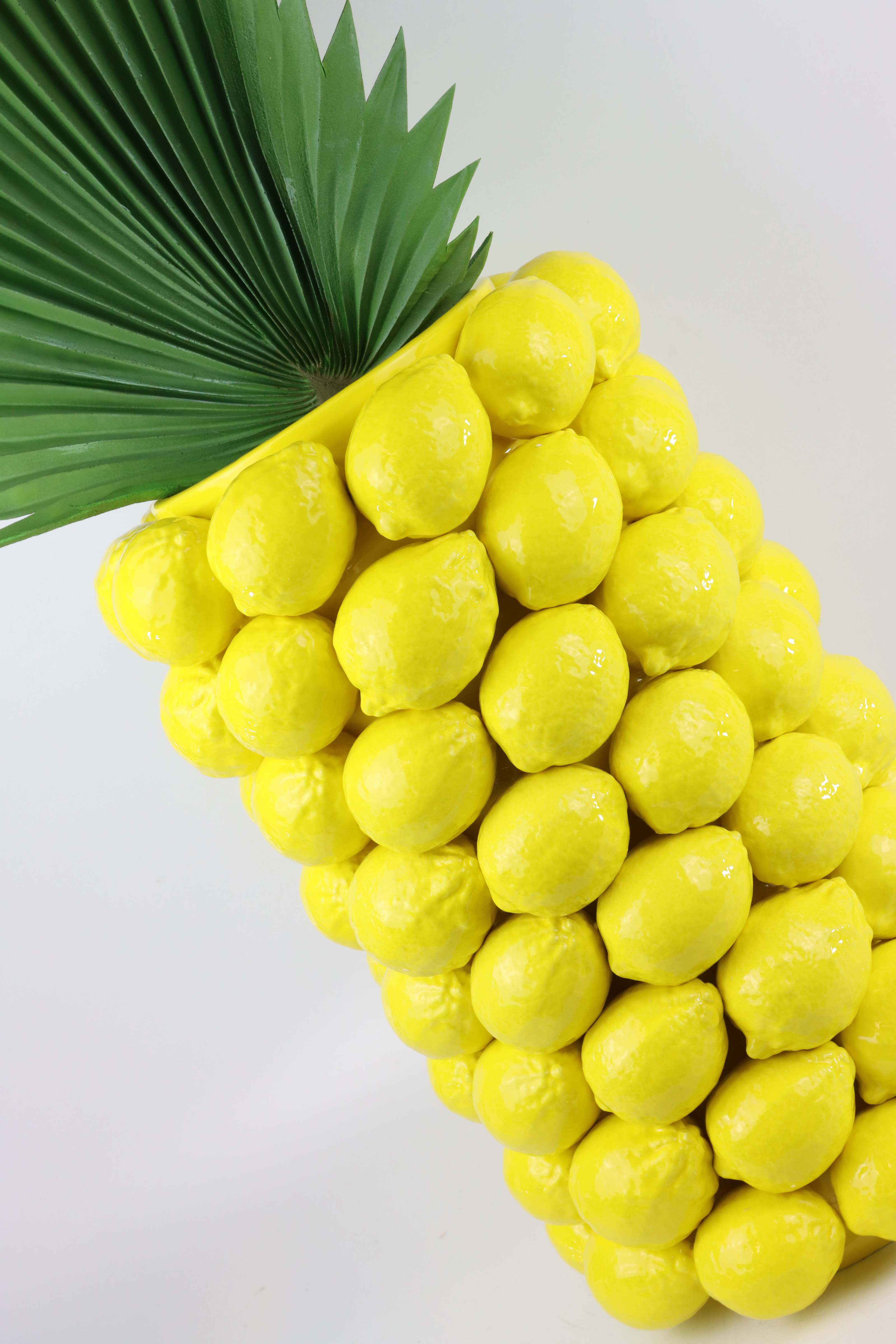 Discover the inspiring spring and summer collection with our exquisite "Limone" vase. This eye-catching ceramic vase in cheerful lemon yellow attracts everyone's attention and brings a touch of Mediterranean flair to any room. With an impressive height of approx. 44 cm, the "Limone" vase is an eye-catching decorative element that shines both on its own and in combination with fresh flower arrangements or ornate branches.