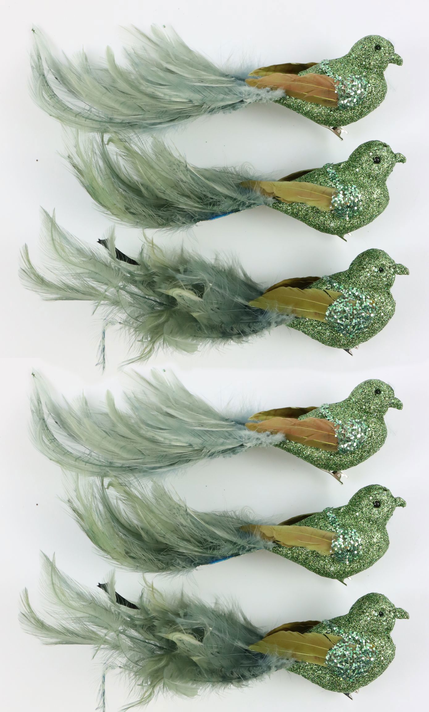 Discover the fascinating "Feather Pride" bird clip set, which combines creativity and functionality in a unique design. This six-piece set not only brings freshness and vibrancy, but also a stylish touch to your home or shop. Each piece in this set is decorated with green feathers that capture the natural charm of birds and enhance your presentations, decorations or packaging.