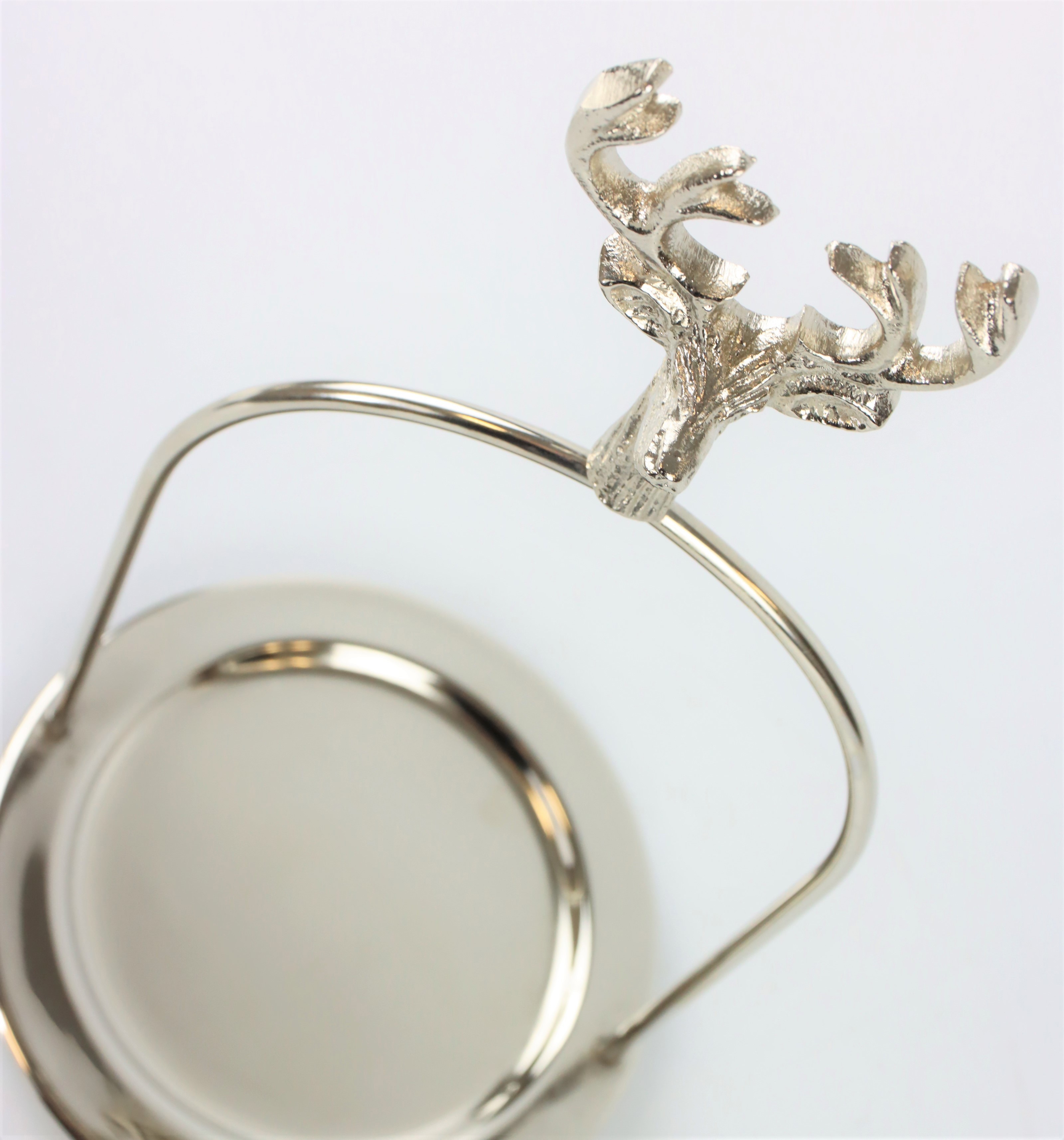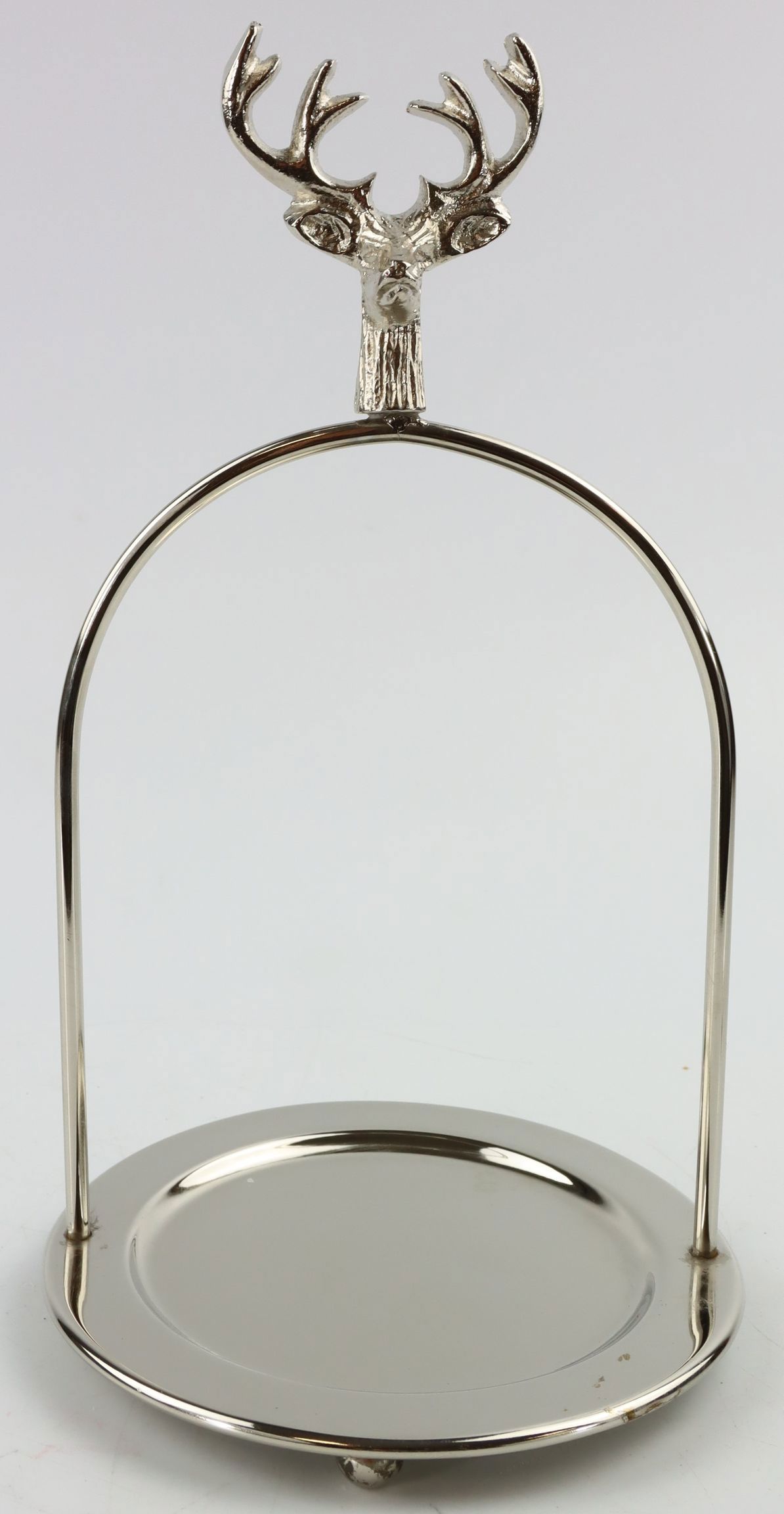 The "Stag" etagere impresses with its elaborate **deer head in silver look**, which immediately attracts everyone's attention. The high-quality material conveys a luxurious and timeless impression that creates the perfect ambience for any occasion, whether festive or simple. Your customers will be delighted at how stylishly and elegantly their goods can be presented on this etagere.
