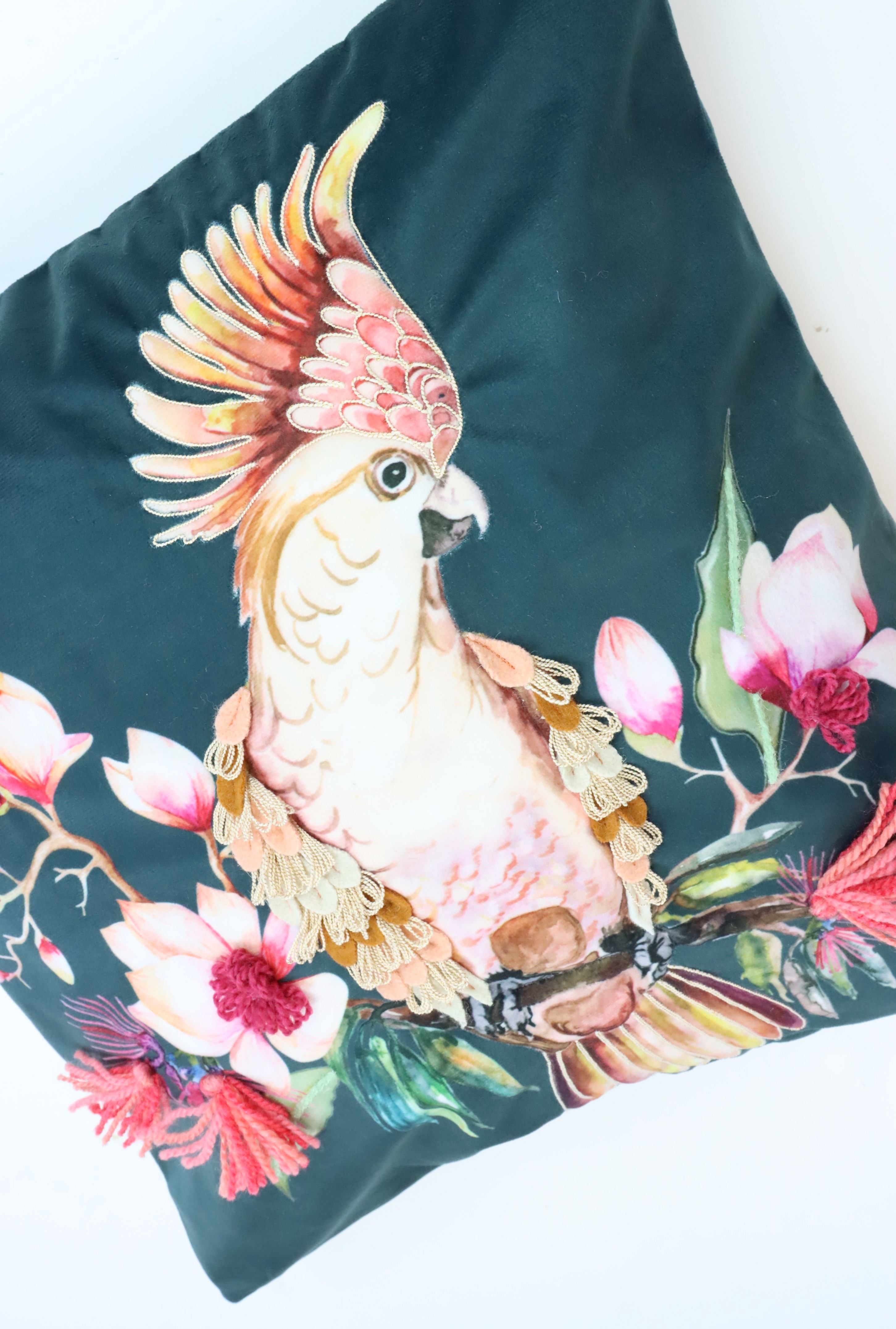 - Exotic cushion cover with parrot motif