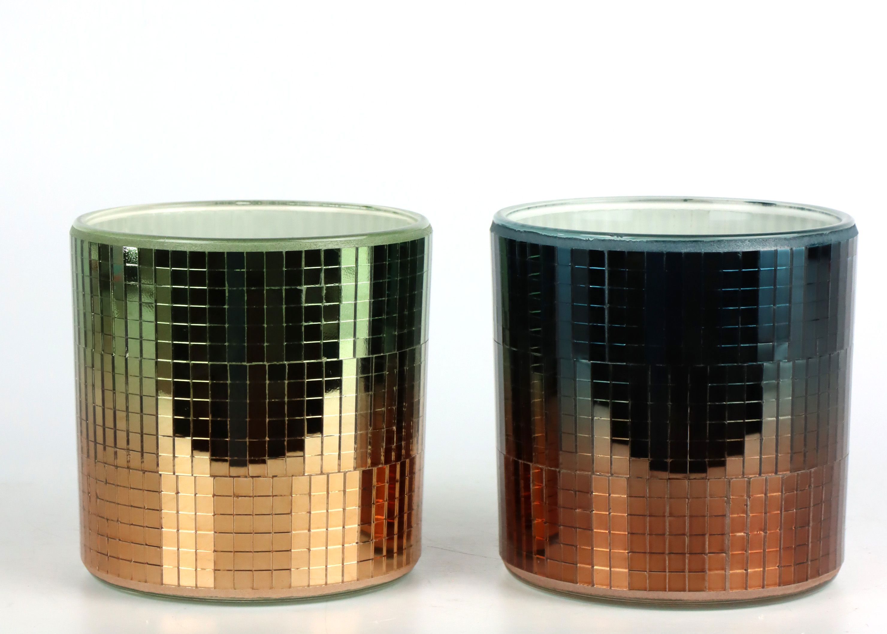 Elevate your autumn and winter decorations with our exquisite "Mosaic Majesty" lantern set. This elegant set, consisting of two artistically designed lanterns, is the perfect addition to any sophisticated living ambience. Specially developed for stationary retail in the home and lifestyle sector, these lanterns offer a unique opportunity to offer your customers exclusive decorative items that are both aesthetically pleasing and functional.