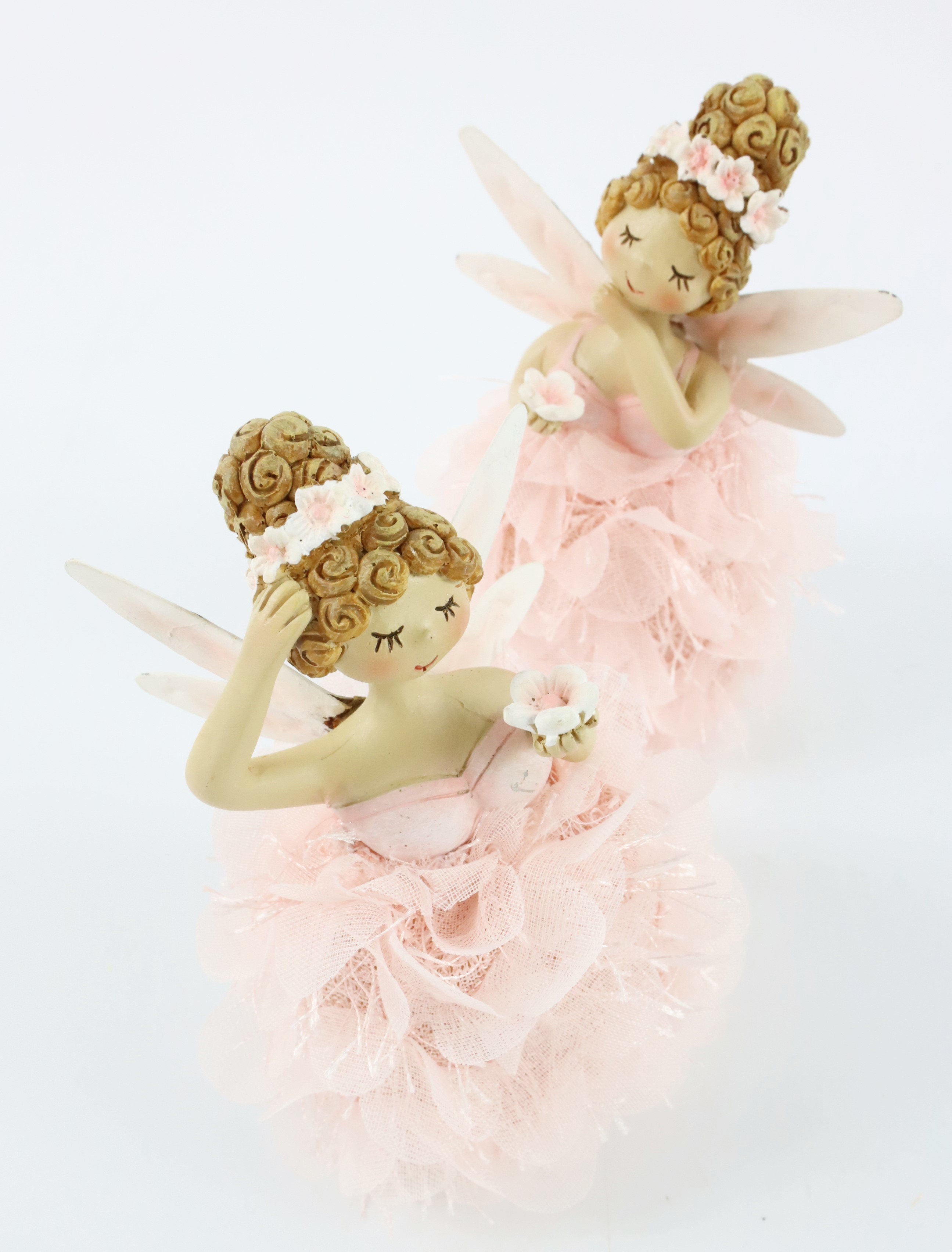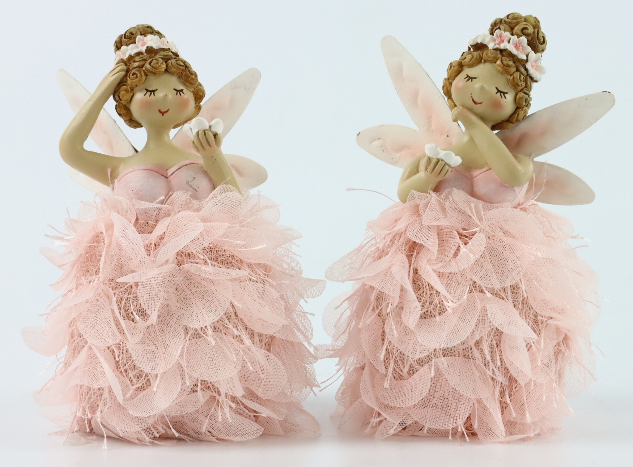 Discover the enchanting "Flower Fairies" set in a graceful pink colour that will add a fresh and enchanting touch to your assortment in stationary retail. This two-piece spring/summer set will have your customers dreaming of spring and is ideal as a decorative highlight in home and lifestyle shops. The delicate figurines are made of high-quality polyresin and each measure approximately 11.5 cm, a perfect size to shine in various living areas.