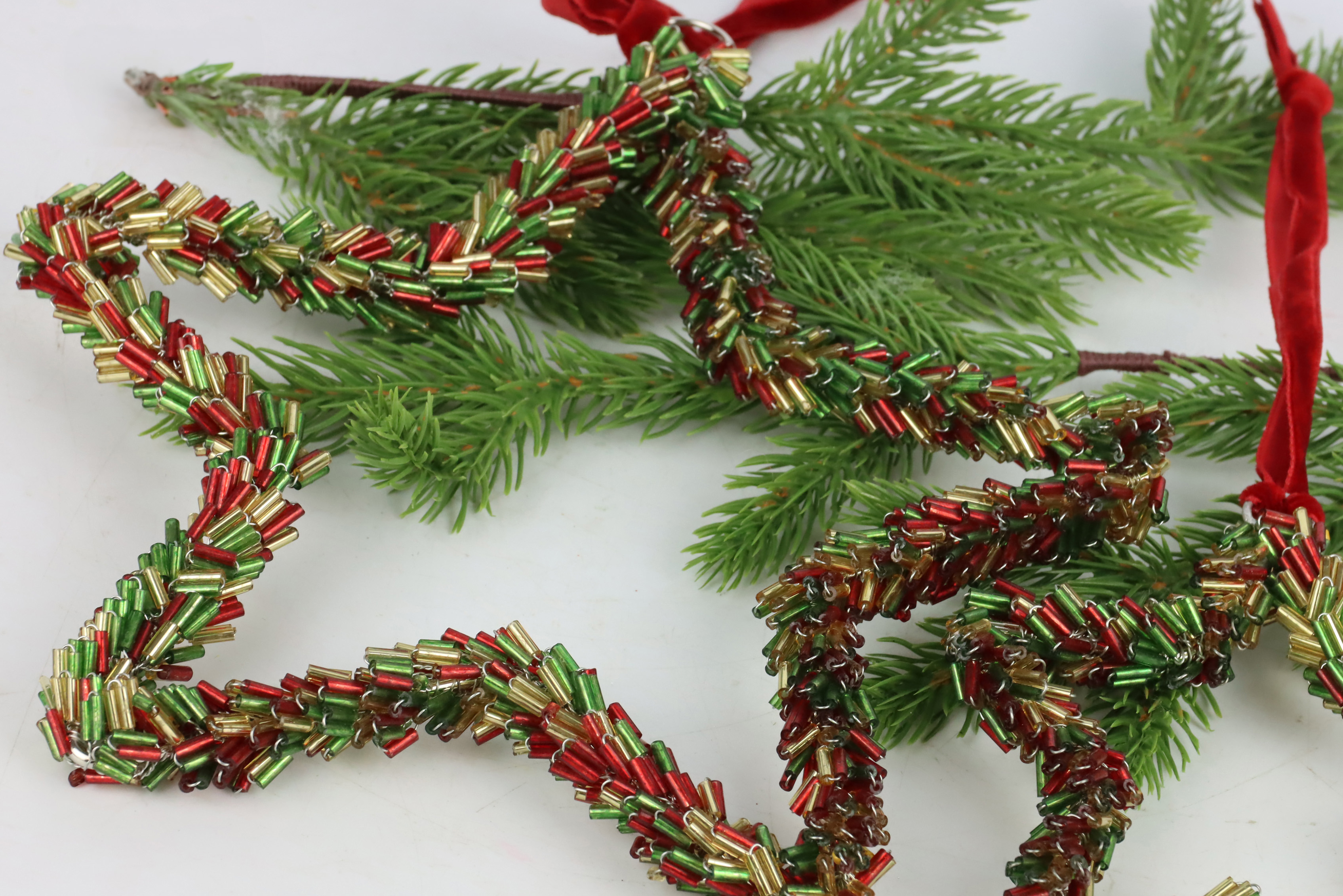 - High-quality design**: Star motifs made of green, gold and red beads for a festive look.