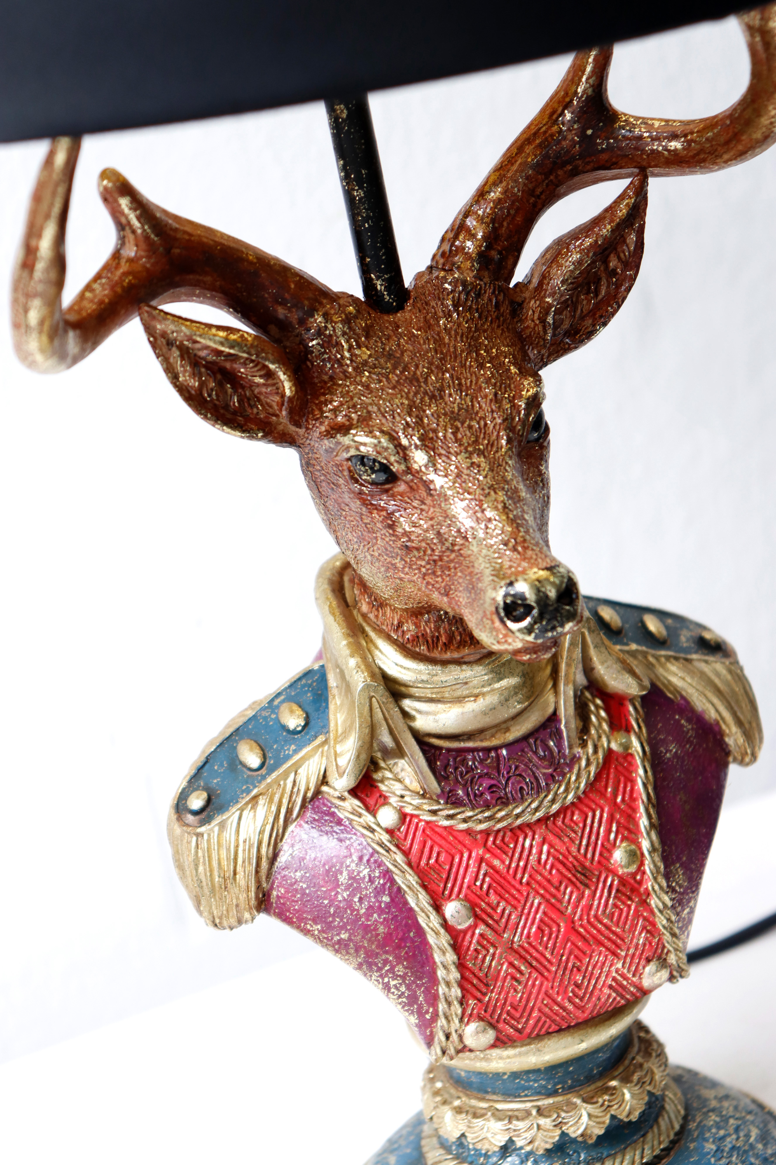 The "DEAREST DEER" lamp impresses with its unique design, which features a majestic deer as its base. The decorative body made of high-quality material combines naturalness with modern styling and is sure to attract the attention of your customers. The black lampshade rounds off the design by creating an atmospheric contrast to the sculptural base while providing a pleasant, warm light that creates a cosy atmosphere in the cooler months of the year.