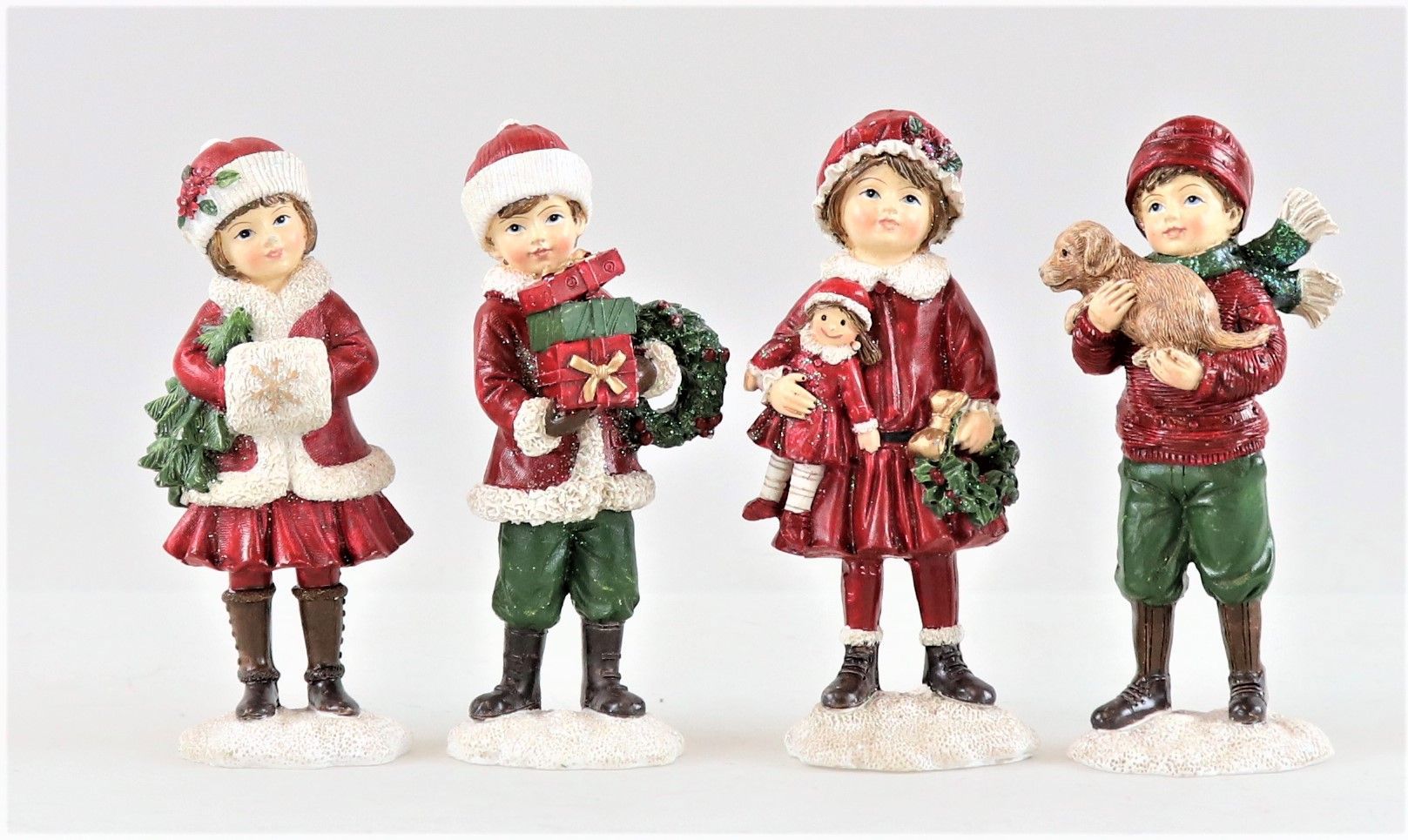 The brilliant reds, complemented by fresh greens, reflect the festive colours of the season and add a more warm and heartfelt touch to your Christmas decor scheme. These heartwarming "Christmas children" would make a charming accent in any home or business and would also make a generous gift for a cherished one this season.
