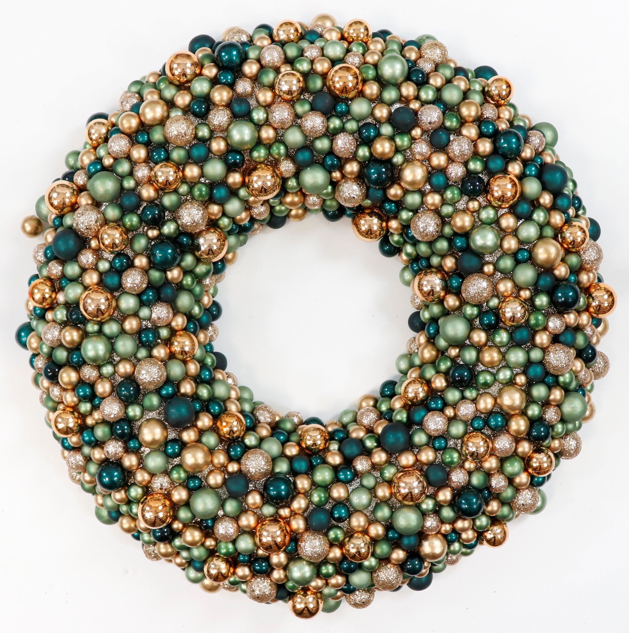 Our stylish Christmas wreath is made of high-quality plastic and polystyrene and has a diameter of 50 cm. The combination of green and gold Christmas baubles is reminiscent of traditional Christmas colours and brings a festive atmosphere to any home. This wreath is the perfect addition to any Christmas decoration and can be used on your front door, above the fireplace or even as a table centrepiece.