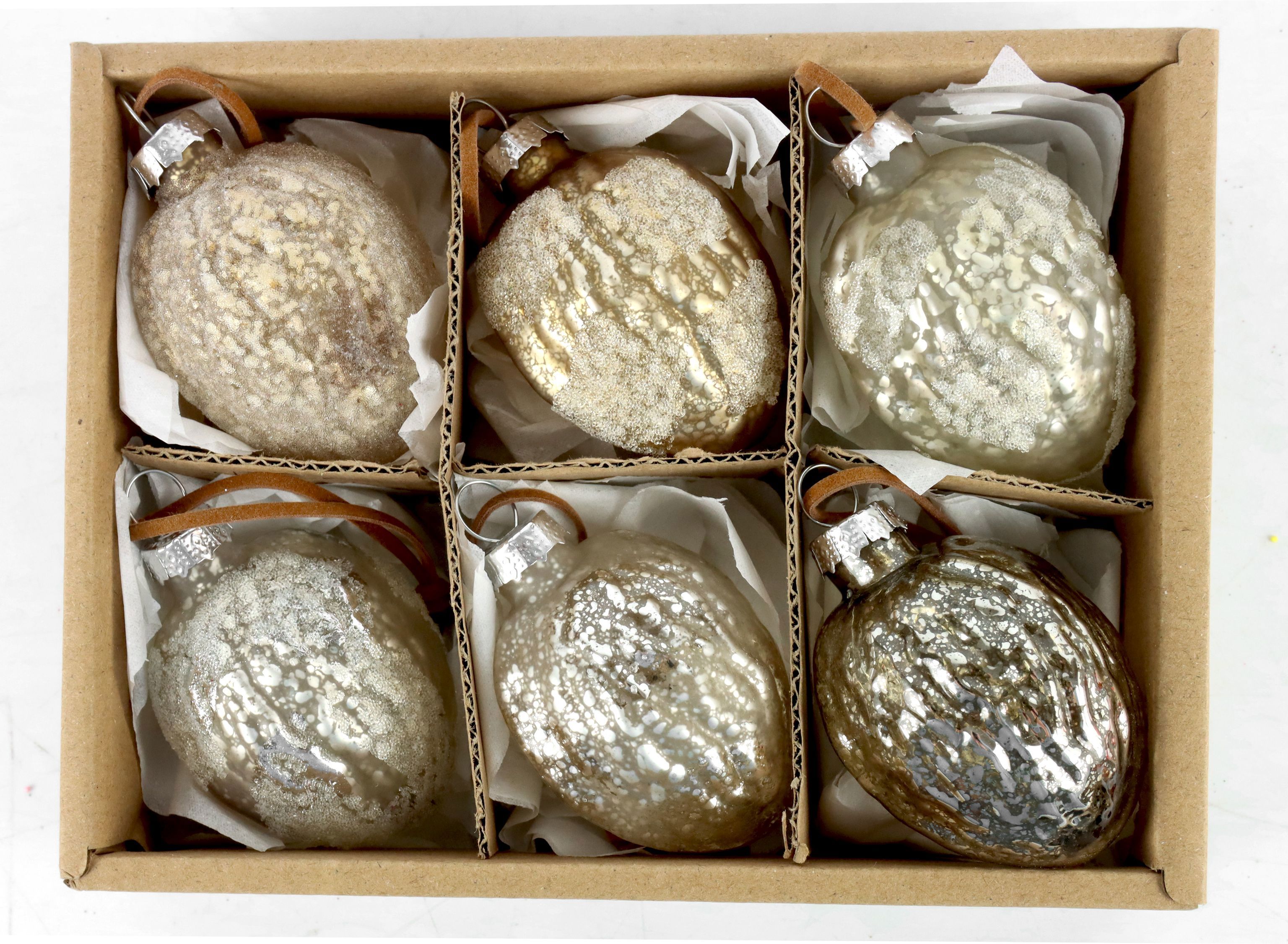 ENThis Christmas, bring the nostalgic charm of the vintage era into your home with this elegant and unique "VINTAGEBOX CHESTNUT" set. With item number 2188, this exclusive six-piece set of glass walnut hangers is perfect for filling your rooms with a warm, inviting atmosphere for the festive season.