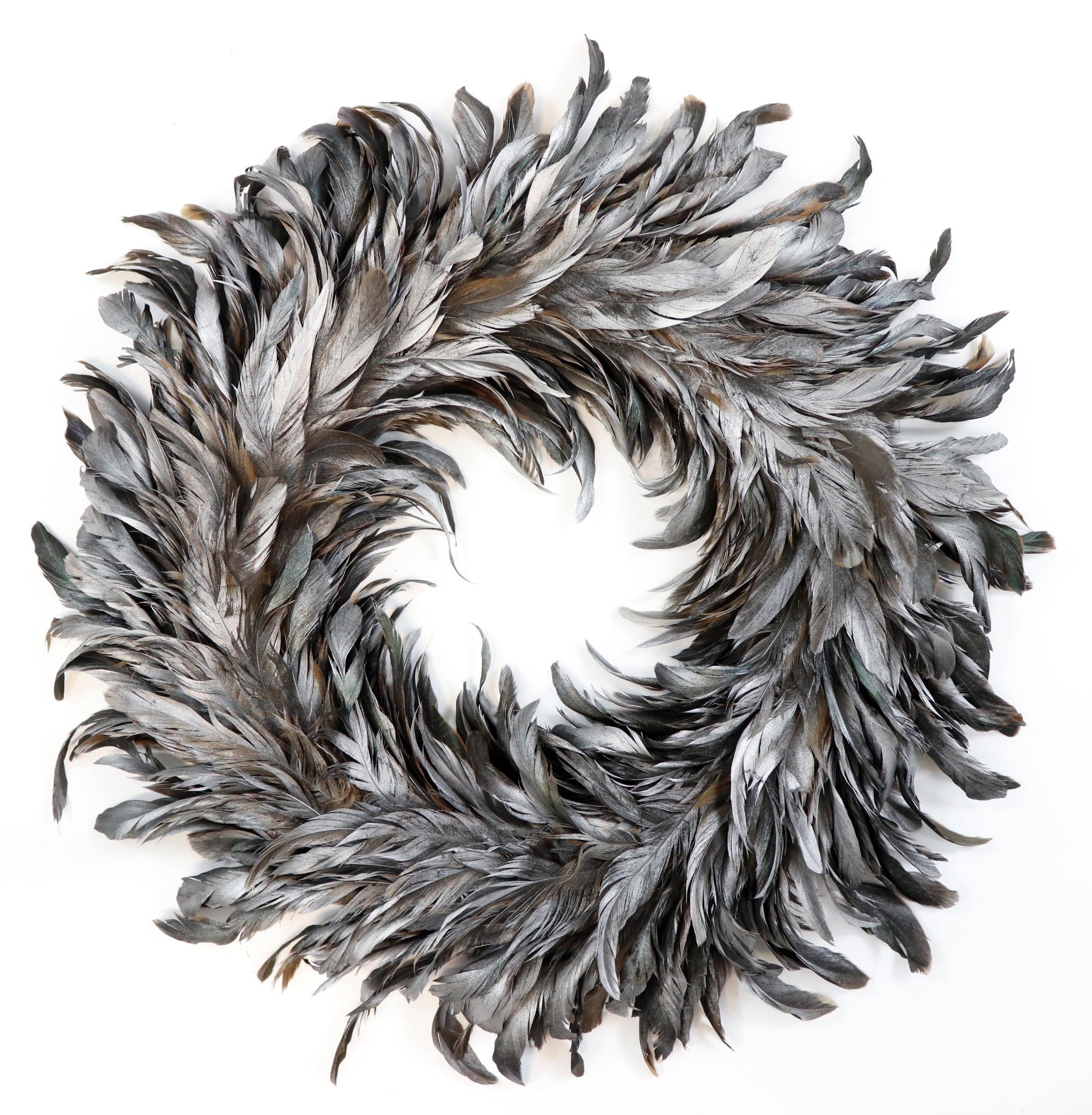 ENThe silver "Argento" feather wreath - the perfect addition to a stylish living ambience