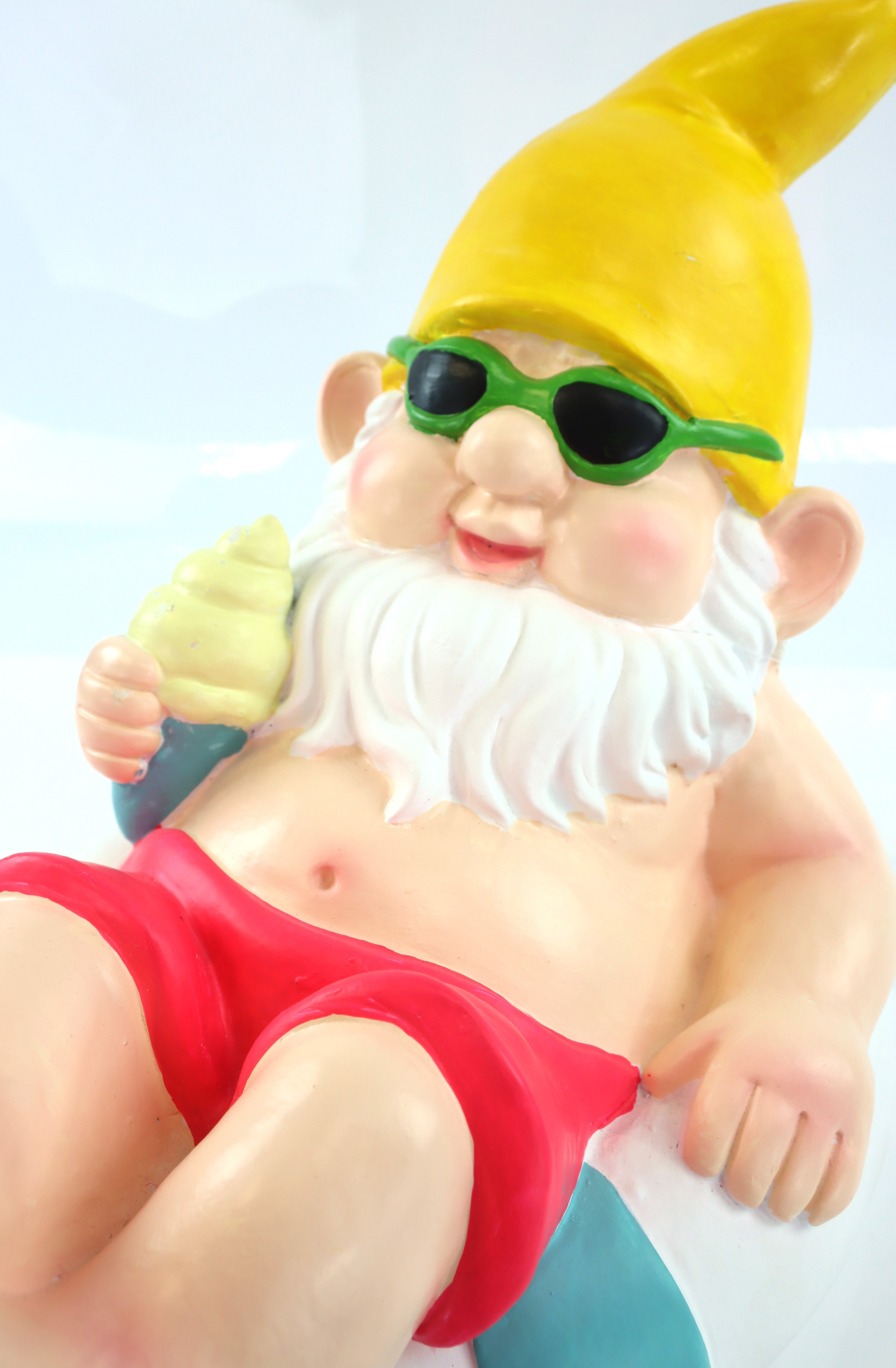 Designed to attract attention, the "FLOATIN' FRANKY" fits perfectly in any garden, on patios or in the entrance area to retail outlets looking for that little something extra. This funny garden gnome with floating tyre is more than just decoration - it is a conversation starter that tells stories and stimulates the imagination. Its bright, cheerful colours and original appearance spread a lasting summer mood.