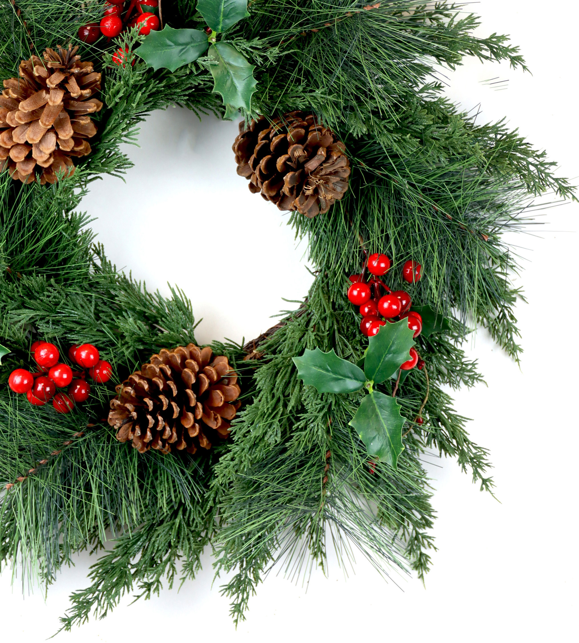 The following SEO-relevant keywords are crucial for the optimal visibility of your online shop in search engines: Christmas wreath, decorative wreath, artificial wild berries, festive decoration, seasonal interior design, Christmas decoration retail, high-quality plastics, home and lifestyle decor.