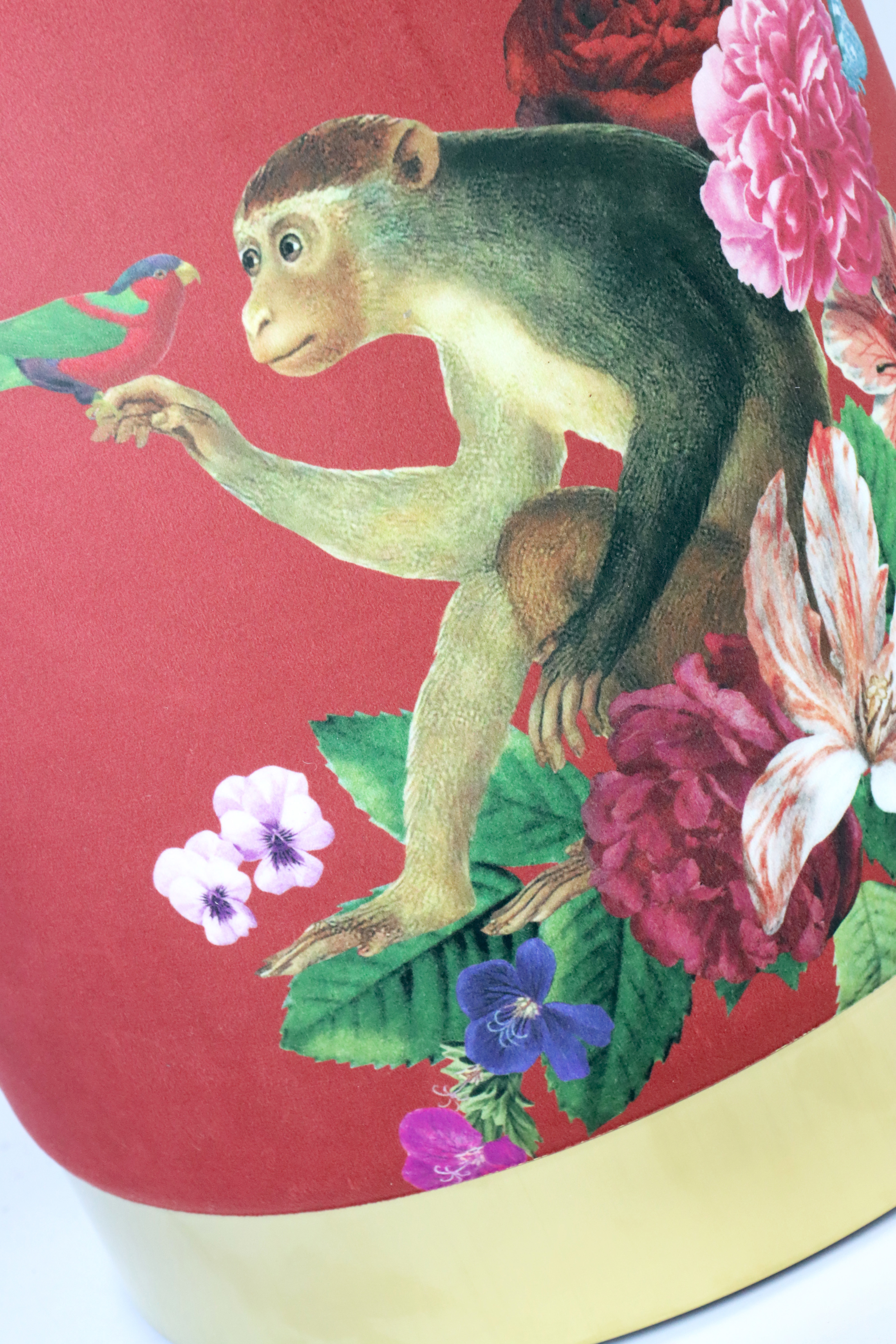 Keywords: pouf, home accessory, B2B product, retail, robust wood, high-quality polyester, durable metal, funky monkey, monkey motif, colourful design, autumn/winter collection.